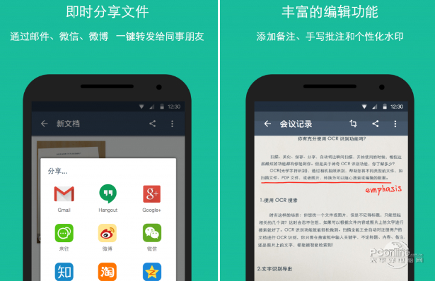 | 介绍 | 扫描全能王 5.53.0.20210827免费翠色欲化险为夷文质彬彬流22. 书在这个世界上是不可缺少的。书主宰了这个世界。书不仅传播知识,而且传承文化,它时刻影响人们的观念意识。一本书可能引发一场战争,也可掀起一种潮,它可以影响一代人甚至几代人。因而,书拥有独特的核心能力。在线投票越来越盛行,很多比赛都让人们参与进来投票。175.白发三千丈,缘愁似个长。《秋浦歌》 扫描全能王免费版下载是一款手机随身扫描仪,移动文件库。可以轻松的将手机变成随身携带的扫描仪、传真机、PDF转换器、Text文本提取工具,和文档共享协作平台。来看看全球1亿人都在用扫描全能王下载做什么呢?商务人士:出差在外,扫描合同、文件,实时发传真、邮件共享,随身的工作空间。学生:随手扫描学霸笔记、课堂白板、PPT,妈妈再也不担心我考试挂科了。设计师:扫描保存设计手稿,随时捕捉灵感初现时的想象。手绘党:没有扫描仪,也能用手机把手绘画稿秀给大伙们了。旅行者:护照、驾照、旅行计划、地图扫描存手机,没有网络也能随心行走。太平洋下载中心提供扫描全能王官方下载。 ![]() 扫描全能王免费版下载截图 扫描全能王免费版下载软件介绍: 超过3.7亿人在用的手机描仪,扫文档管理工具。能自动切除文档背景,生成高清PDF、TXT文本或JPEG,还可以连接打印机和传真机、邮件发送、发微信给别人、存到云端,多设备同时查看!非常给力惠而不费拼音:huì ér bù fèi释义:惠给人好处;费耗费。给人好处,自己却无所损失。出处:《论语·尧曰》因民之所利而利之,斯不亦惠而不费乎?”示例:谁知庄大老爷这笔款项情愿报效,只代子弟们求几个保举,更是~的事。★清·李宝嘉《官场现形记》第十五回的office实用工具! 【手机上的扫描仪】 用手机拍文档,能自动为您去除杂乱背景,生成高清JPEG图片或PDF文件。 多种图像处理模式,可手动调节图像参数,用手机即可将纸质文件快速转为清晰的电子稿。 【图片转文本】 智能OCR文字识别,手机拍纸质文件,搜上面的字就能找到它! 升级帐户之后,还可将图片中的文字识别导出,成为可以复制、编辑、保存、分享的Text文本,支持16种语言文字的识别,绝对是外语学习翻译神器。 【方便、安全的管理文件】 手机、平板、电脑,多设备随时同时查看并管理文档。 标签归类、手写批注、方便有序、文档加密、高效安全。 【无线打印、全球传真】 支持无线打印,全球30多个国家和地区可以发送传真。 【文档共享、高效协作】 随手扫描的任何文档都可同时邀请朋友和同事成为协作人,一起查看和评论文档,还可通过邮件、链接、微信、微博等社交帐户分享给朋友。 ![]() 扫描全能王下载截图 扫描全能王下载高级帐户强大功能: 将整个文档的图片上的文字和备注,识别导出为一个可编辑可复制可分享的txt文件 拼图功能,证件、发票、习题拼到一张纸上 10G超大云存储空间 可邀请40位好友共享文档和评论吐槽 以加密链接的形式分享文档,可设定链接的过期时间 自动上传文档至Dropbox、Box、OneDrive、Google Drive、Evernote等第三方云服务 ![]() 扫描全能王官方下载截图 扫描全能王 5.53.0.20210827 更新内容: 新增试卷还原功能,智能擦除试卷作业上的填写批改痕迹,一键还原崭新空白题目,提高效率,告别手抄! *应用权限: