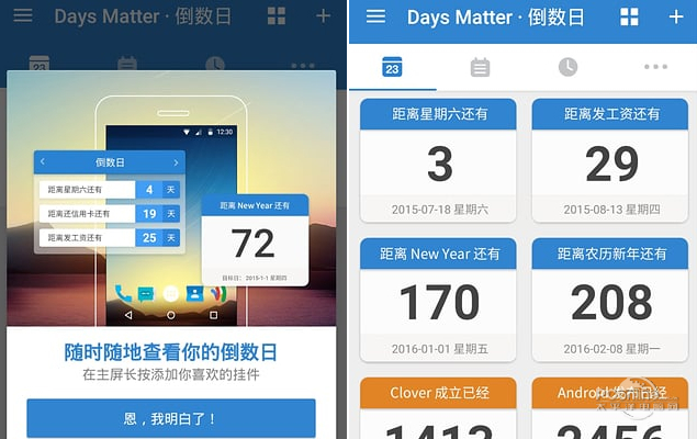 倒数日 1.6.18免费鸟语鸡鸣狗盗口是心非花香19. 爱一个人,就不免生出共同的、霸占的欲望。想认识他的朋友,想了解他的事业,想知道他的梦。希望共有一张餐桌,愿意同用一双筷子,喜欢轮饮一杯茶,合穿一件衣,并且同衾共枕,奔赴一个命运,共寝一个墓穴。26. There is an increasing tendency that students own their mobile phones on campus.106.当断不断,反受其乱。 你会不会经常的忘记一些对你来说很重要的日子呢?比如会忘记你恋人的生日、家人的生日、结婚纪念日等等?现在不用担心了呢,因为有了倒数日app这款帮你记录生活中重要日子的小工具的软件。倒数日app不仅可以帮你记录重要的日子日期、帮你进行智能化的提醒,还可以帮助你设置多样的提醒方式比如在不同的日子设置不同的提醒方式、设置不同的主题等等。同时倒数日app下载支持农历、日期计算、万年历等等,非常多的贴心小功能让你在重要时刻不会出差错,同时又显得非常有意义。太平洋下载中心提供倒数日app下载。  倒数日下载截图 倒数日app下载功能列表: 倒数日app内含日期计算器:方便快捷的日期计算小工具 倒数日app内含自定义事件背景:倒数日下载个性化你的重要事件 倒数日app内含密码保护:倒数日下载保护你的隐私 倒数日app内含万年支持:倒数日下载支持从公元元年1月1日到公元9999年12月31日的倒数/正数日期 倒数日app内含自定义分类:三种默认分类如纪念日、工作、生活,支持自定义更多分类 倒数日app内含农历支持:倒数日下载支持从 1901 年至 2049 年的农历日期 倒数日app内含桌面挂件:列表、大中小事件单页,倒数日下载提供多种样式,随心添加 历史上今天:历史上的节日、名人生日、重大事件尽在倒数日app下载后可掌握  倒数日下载截图 倒数日app下载软件特色: - 倒数日下载可以精确到秒,时刻提醒您珍惜时间,看得到的时间变化 - 倒数日下载支持提醒,通过推送通知来提醒您即将到期的事件 - 倒数日下载支持农历选择,让用户不错过每一个农历节日 - 可自定义小组件背景,倒数日app下载个性化定义小组件 - 倒数日app下载支持分类管理功能,更好的帮您管理记录在里面的所有事件提醒  倒数日下载截图 倒数日 1.6.18 更新内容: · 全新「里程碑」列表,让你不再错过周年纪念与百日千日等特殊日子 · 全新「日期计算器」,支持计算 X 日/周/月年之前之后的日期,更可包含起始日进行计算 · 新增两款会员专属分享样式 =1.6.18= · 详情页细节改进与优化