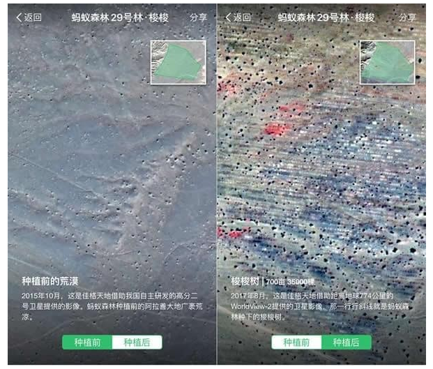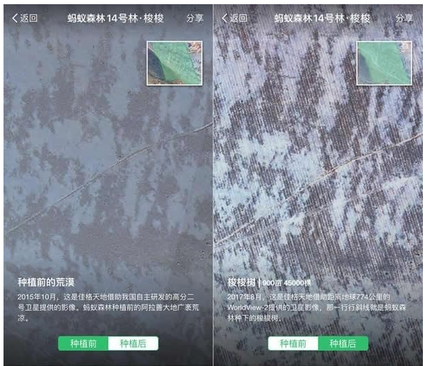 在支付宝中收集足够的蚂蚁森林绿色能量,就会以你自己的名义在沙漠地区种下一棵树,现在有不少小伙伴已经种下了一颗树。你想亲自看看种的树长成什么样了吗?现在支付宝满足了你的这个想法,一起来看详细的介绍。 蚂蚁森林卫星看树和实时看树在哪里? 2017年11月16日,蚂蚁森林联合佳格天地推出了部分地区“卫星看树”和“实时看树”功能,借助遥感卫星技术,2.3亿用户种下的蚂蚁森林在太空中清晰可见。   据统计,截至2017年8月底,蚂蚁森林用户已经超过2.3亿人,在内蒙古阿拉善和鄂尔多斯、甘肃武威等地区种植及维护真树1025万棵,包括梭梭和沙柳,种植总面积超过16万亩。而这些不断增加的树,在太空中也成了难得一见的壮观景象。  这次显示在大家页面上的是卫星图片。离地球770千米远的太阳同步轨道上的WorldView-2卫星,和在距离地球631千米的太阳同步回归轨道上的高分二号卫星,拍摄到了内蒙古荒漠化地区的图像,裸露的荒漠化大地、山脉和风沙,还有蚂蚁森林种植地块清晰可见的一排排斜线。   这些斜线17. 爱,是世界上最美好的东西,即使它伤了你的心,也要笑着忘却,然后开始下一段旅程。就是刚种下去的梭梭苗,它们约二十厘米高,在地面一公里外可能都模糊不可见,但是,当千百万棵梭梭种下去,在太空中却能看见非常明显的变化。也许你并不知道自己的树在哪条斜线上,但你依然可以很骄傲,因为你种的树,已经成为太空可见的地球奇迹! 大家不仅能远距离的“太空看树”,蚂蚁森林还在一些种植地块上线了近距离的“实时看树”功能。通过安装极飞电子稻草人FM1智能监测站,协同无人机多光谱技术,可以让管理人员准确统计树木的数量变化趋势及健康状况,帮蚂蚁森林建立一个完善的生态数据库,同时为世界各地的公益项目提供技术借鉴。  最大的惊喜在于,这些电子稻草人能每天拍摄实时照片并回传,也就是说,用户通过借助电子稻草人的眼镜,可以看见千里之外自己种的树。虽然相隔千里,却像近在眼前。 蚂蚁森林线上看树指南风雨手舞足蹈千里之行,始于足下无阻26. “吃亏是福”不但是一种人生策略,更是一种生活智慧。吃小亏不但能够赢得人们的景仰,还可学到人生大智慧。81. I wonder if it is convenient for you to join me in visiting the exhibition.(2017.全国)290.博观而约取,厚积而薄发。《杂说》 辇路重来,仿佛灯前事。情如水,小楼熏被,春梦笙歌里。锁衔金兽连环冷,水滴铜龙昼漏长。支付宝,蚂蚁森林21、You cannot burn the candle at both ends. |