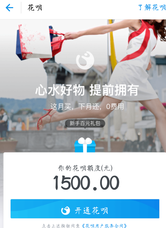 相信很多小伙伴对蚂蚁花呗都很熟悉了,这是支付宝推出的一项先消费、后还款的服务方式。用户想要开通蚂蚁花呗,需要满足限制条件,下面是小编带来的具体开通流程介绍。 如何开通蚂蚁花呗? 1、打开手机支付宝,在搜索窗口输入&杯水车薪拼音:bēi shuǐ chē xīn释义:用一杯水去救一车着了火的柴草。比喻力量太小,解决不了问题。出处:《孟子·告子上》今之为人者,犹以一杯水救一车薪之火也。”示例:有新债未动毫分的,除了承许夏鼎三十两外,大有~之状。★清·李绿园《歧路灯》第七十四回ldquo;花呗”两字进行搜索。  2、点击打开蚂蚁花呗后,还有一个“开通花呗”选项,在这个页面会显示出你的花呗额度。点击选项后,系统会提示你输入支付密码,完成身份验证。   3、输入密码后,系统会提示你签约成功,这时候你的花呗就开通了。  4、在花呗页面,“我的账单”这一选项是查看自己上个月的消费情况,“我的额度”是花呗的可用额度。  蚂蚁花呗的还款期限是下个月的九号,大家一定要及时还款哦。 开通支付宝花呗的具体流程龙江水象征和平茫茫飞凤舞26. 感情是女生的全部,却只是男生的调剂7. I had a great first impression of American people.欧阳修278.忧劳可以兴国,逸豫可以亡身,自然之理也。《伶官传序》 高柳垂阴,老鱼吹浪,留我花间住。田田多少,几回沙际归路。花开堪折直须折,莫待无花空折枝!花呗,支付宝,蚂蚁花呗There is no evidence to suggest that… |