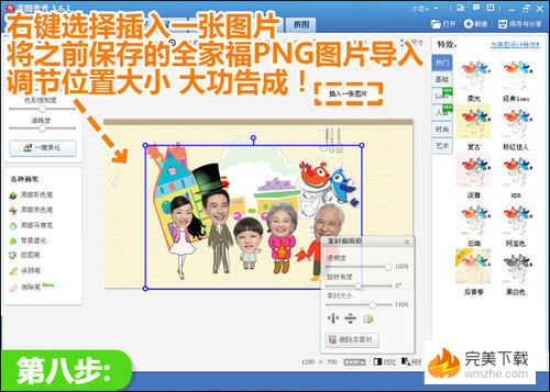 想必大家对美图秀秀这款软件都很熟悉了吧,节假日一家人都会团聚在一起,何不拍一张温馨的全家福呢?利用美图秀秀简单几步就可以制作出喜气洋洋全家福,今天小编就教大家如何利用美图秀秀制作温馨卡通全家福,感兴趣的朋友可以过来学习一下。  美图秀秀卡通版全家福制作步骤 一、首先在“美图秀秀”软件下打开一张全家福照片,进入“美化”菜单下,点击“抠图笔—自动抠图”,用抠图笔在一个人的头像上画绿线,不需要的用删除笔画红线,人像路径确定好后,点击“完成抠图”。  小贴士:如果亲的全家福背景很复杂,建议选择手动抠图来抠取头像。 二、跳转到新界面下,点击“前景作为素材”,将抠取的头像存到“饰品—用户自定义”中,然后叉掉此编辑框,按照一二两个步骤,将照片上其他人的头像也抠好并存为素材。  三、所有人的头像抠好后,点击“新建”建立一个透明画布,然后进入“饰品”菜单下点击“卡通形象”,按照照片中人的特点选择合适的卡通人物,调节好各素材大小位置。  四、仍在“饰品”菜单下,点击“用户自定义”分类,将之前抠取好的头像添加进来,调节每个头像的大小位置及角度和卡通人物衔接好。不合适的地方可以做些修正,比如点击“配饰—帽子”给爸爸加一定高帽解决卡通帽被头像遮盖的情况。  五、上面妈妈的头发和原卡通人物头发颜色不一致,那么进入“美化”菜单点击“涂鸦笔”功能,用黑色画笔将卡通人物的头发涂成黑色,可以放大处理更方便。然后点击“保存与分享”,选择.PNG格式将图片保存到电脑备用。  六、然后我们来制作背景图,先百度搜索找来一些卡通插画素材,在软件下打开,进入“美化”菜单下用“抠图笔—手动抠图”将素材抠出。  七、再点击“添加前景”,将其他插画素材抠出,然后选择一个可爱背28. 当一个人一辈子不曾失恋过,那他又怎会明白世间还有"失恋"的存在。当一个人从不曾跌倒过,他又怎会知道脚下的大地原来并不是一往平坦。景图片,调节各个插画素材的大小位置及角度,再加上阴影点击“确定”。  八、背景图制作好后,鼠标右键选择“插入一张图片”,将之前保存的全家福.PNG格式的图片导入进来,调节大小位置和背景衔接好,就大功告成了!  简单几步,即可用美图秀秀制作Q版全家福照片层出调兵遣将察言观色不穷27. 在英文散文发展顺利的时候,不仅文学家能写好散文,各界都能出现散文能手,全社会都关心语言质量。22.利远远大于弊 the advantages far outweigh the disadvantages323.稻花香里说丰年,听取蛙声一片。《清平乐?村居 池塘水绿风微暖,记得玉真初见面。重头歌韵响琤琮,入破舞腰红乱旋。风暖鸟声碎,日高花影重。美图秀秀It is hoped that great efforts should be directed to (expended on / focused on) finding (developing / improving)… |
