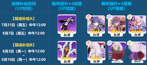 崩坏3清风古韵活动怎么玩呢,有什么玩法攻略呢,一定都有小伙伴们不知道吧,接下来一游小编给大家带来了一篇关于崩坏3清风古韵活动玩法攻略,希望大家喜欢。 崩坏3清风古韵活动玩法攻略  本次精准补给A为云墨丹心的推荐装备「袖缠云」与仙佑神州套装「符华·戍边」。 精准补给B为神恩颂歌的推荐装备「11th圣遗物」与神恩颂歌套装「卡莲·颂歌」。 同时,「符华·戍惠而不费拼音:huì ér bù fèi释义:惠给人好处;费耗费。给人好处,自己却无所损失。出处:《论语·尧曰》因民之所利而利之,斯不亦惠而不费乎?”示例:谁知庄大老爷这笔款项情愿报效,只代子弟们求几个保举,更是~的事。★清·李宝嘉《官场现形记》第十五回边」和「卡莲·颂歌」在对应精准补给开始时将开启许愿池。 ======UP时间====== 活动期间内,所有装备均有一定概率获取;指定装备UP时间内,该装备的获取概率提升!  ※本次活动中,指定武器/圣痕在UP时间内,相比同星级的武器/圣痕,UP武器/圣痕的获取概率更高 ※指定武器/圣痕在UP时间外,相比同星级的非UP武器/圣痕,其获取概率完全一致(即该装备在非UP时间段内,其获取概率不为0) ※有关详细的指定装备的获取概率信息,请参照当期补给详情界面末尾的【概率详情】 ※许愿池详细规则,请在精准补给页面进入【许愿池】系统查看 【★4武器】 双枪:幽色咏叹调 太刀:仿灵刀·冰昙天 重炮:提尔的断腕 大剑:天鹅湖 十字架:11th圣遗物 拳套:袖缠云 镰刀:阿芙洛狄忒 【★4圣痕】 仙佑神州套装:符华·戍边(上、中、下) 神恩颂歌套装:卡莲·颂歌(上、中、下) 量子圆舞曲套装:迪拉克(上、中、下) 烈阳先知套装:泰勒斯(上、中、下) 绘画者套装:莫奈(上、中、下) ======精准说明====== 1)使用精准补给可能获得★3~★4武器与圣痕、装备经验材料、通用进化材料、吼姆宝藏。补给时会消耗精准补给卡。 2)每十回精准补给内必出一件★4武器或★4圣痕。 3)活动期间,使用精准补给可获得的★4装备必定为补给内容中所列出★4装备,不会出现所列内容外的装备。 4)武器UP是指,相比同星级的武器,UP武器的获得概率更高;圣痕UP是指,相比同星级的圣痕,UP圣痕的获得概率更高。 5)精准补给A与精准补给B的补给次数相互独立计算、互不影响。以精准A为例,其补给次数会一直累计在精准A中,每一期精准A的补给次数和十连保底的规则和原有的精准一样,但不会对精准补给B产生影响。 6)精准补给A和B的每期UP圣痕都可使用一次许愿池,许愿池的许愿规则不变。 以上就是崩坏3清风古韵活动玩法攻略,希望大家喜欢,更多内容敬请关注完美下载网。 崩坏3清风古韵活动怎么玩?崩坏3清风古韵活动玩法攻略花满城风雨样多(五昨日黄花花八门)43. 看重别人,尊重别人,就能把对手变成自己的朋友,就能化害为益,变坏为好,就能把遭遇变为幸运,把坎坷变为通途。到目前为止,我对我们取得的成绩很是满意。243.君问归期未有期,巴山夜雨涨秋池。何当共剪西窗烛,却话巴山夜雨时。《夜雨寄北》 当年燕子知何处?但苔深韦曲,草暗斜川。见说新愁,如今也到鸥边。无心再续笙歌梦,掩重门、浅醉闲眠。莫开帘,怕见飞花,怕听啼鹃。227王维:相思30.Beauty will buy no beef. 漂亮不能当饭吃。 |