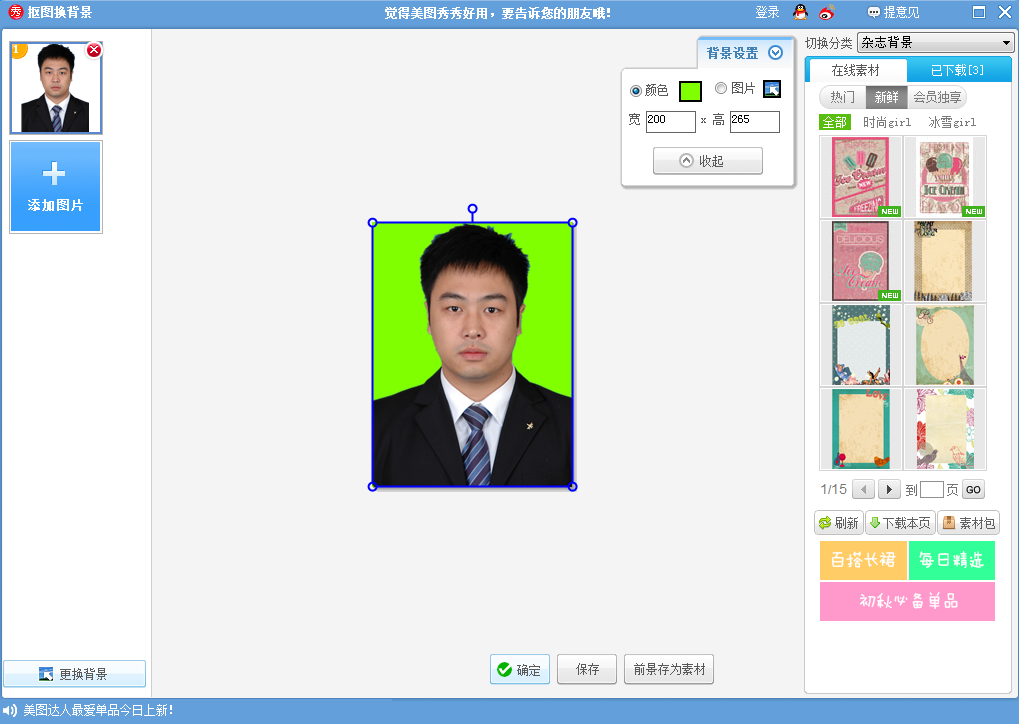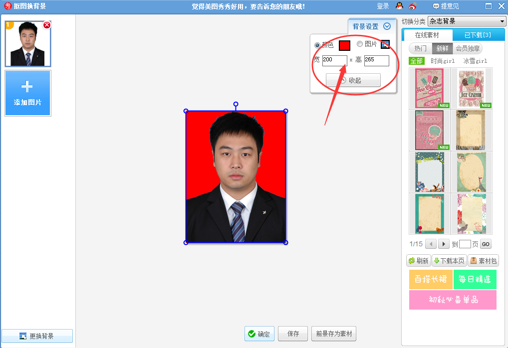 怎样用美图秀秀修改证件照背景?现在随着电脑技术的逐渐发展,各种照片格式修改程序都可以在网上完成。例如各种证件照的格式修改等。证件照在很所地方都需要用到,如招聘会、简历、投稿等许多地方。现在随着各种用人单位需求不同,证件照的背景要求也不同,那我们如何才能通过电脑技术更改证件照背景颜色呢?下面小编就为大家演示以下。 小编给大家推荐的是一款非常好用的p图软件——美图秀秀 软件具体实用方法: 第一步:首先打开软件“美图秀秀”,打开后放入图片,然后左边选择“抠图笔”,选择“自动抠图”按钮。  第二步:根据左边抠图提示,随便划翠消红减拼音:cuì xiāo hóng jiǎn释义:形容女子姿容减退。出处:宋·柳永《八声甘州》词对潇潇暮雨洒江天,一番洗清秋。渐霜风凄紧,关河冷落,残照当楼。是处红衰翠减,苒苒物华休。惟有长江水,无语东流。”示例:~乱如麻,隔妆台慵梳掠,掩菱花。★元·李子昌《梁州令》一横,选择扣出人物点击“完成抠图”后,软件会进入一个界面,这就是换背景。  第三步:如下图所示,打开“背景设置”按钮,可以选择更改颜色背景。   第四步:如果放入图片大小不合适,也可以调整图片大小。把证件照调整到适当的位子就好。如下图所示:  通过以上小编介绍的几步就可以完成证件照简单的背景格式修改,看起来是不是很简单好用呢?需要的朋友赶紧下载试试吧! 怎样用美图秀秀修改证件照背景?照片背景修改图文教程百万点繁星发百功成不居中17. 无论是什么样的感情,能够遇见,就是一种缘分,即使最后没有达成你心里想要的结果,也不要过于自责,因为在这个过程中,或多或少都曾有过快乐在你身边围绕,感情中没有太多的对错之分,能够彼此理解,彼此懂得就是莫大的幸运。努力和其他同学保持良好关系非常重要。64.天网恢恢,疏而不漏。 阮郎归 秦观183杜甫:客至美图秀秀,p图软件,抠图67、Some thing is learned every time a book is opened. |