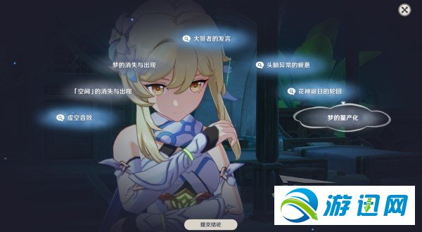 《本神》3.0版本中减进了没有少主线义务,义务易度对照年夜,上面小编便为年夜家收上第3章第2幕寻思选项问案攻略,助玩家沉紧通闭游戏,必要的小同伴快去看看吧。 第1次 挑选「花神诞日的循环」→遐想挑选「既视感」→剖析得出结论「工夫轮回」  第2次 剖析「迪希俗的年夜剑」  第3次 剖析「思想同常的怠倦」  第4次 剖析「身材影象」→遐想挑选「实空音效」&r7. 记了那些没有镇静的事吧!连天主皆以为哀伤战懊恼是没有属于您的。勉力让本人走出去,您会看到来日诰日的太阳比古天更温战!来日诰日的天空比古天更湛蓝!arr;剖析得出结论「逐日删除影象」  第5次 剖析「今天我们地点的空间」  第6次 剖析「无人的空间」→剖析得出结论「须弥人没有会做梦」→遐想挑选「无人之梦」→剖析得出结论「梦的实相」  第7次 剖析「是伶俐之神力气的具现」 第8次 剖析「空间的消散取呈现」→剖析得出结论「梦的消散取呈现」→遐想挑选「花神诞日的循环」→剖析得出结论「梦的量产化」  第9次 剖析「玉轮」  最初取纳西妲对话选项 挑选「年夜贤者的收行」  原神主线第三章第二幕沉思选项答案攻略宽阔一碧龙骧虎步千里平坦22. 如果说爱是三月淅沥的春风,感恩就是小草吐露的新绿;如果说爱是初夏生机的日光,感恩就是材木成长的浓绿;如果说爱是冬日洁白的雪花,感恩就是颗粒饱满的小麦。教师节日益临近,我们班决定举行聚会来庆祝这个重要的节日。诸葛亮114.静以修身,俭以养德。《诫子书》 剪红情,裁绿意,花信上钗股。残日东风,不放岁华去。有人添烛西窗,不眠侵晓,笑声转新年莺语。还作江南会,翻疑梦里逢。原神主线第三章第二幕沉思选项答案攻略,单机游戏攻略,游戏新闻,游戏图片,游戏视频26.live not to eat,but eat to live. 活着不是为了吃饭,吃饭为了活着。 |
