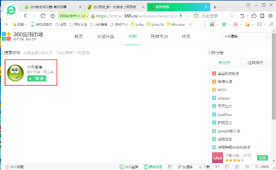 当用户在使用360浏览器浏览文档的时候,有时候我们需要在浏览器上下载许多图片,可以当我们一个个的点击下载图片时,会觉得非常麻烦,这样会浪费很多的时间。那我们怎样才能批量下载360浏览器上的图片呢?下面小编就教大家如何设置360浏览器,可以一键批量下载图片的方法。 具体设置操作方法: 1、 打开360浏览器,直接找到菜单栏中的“扩展”按钮并点击它,然后在弹出的下拉菜单中选择“扩展中心”,打开扩展中心。设置如下:  2、在打开的“扩展中心”杯茗之敬拼音:bēi míng zhī jìng释义:请人饮宴的谦辞。出处:《镜花缘》第十一回吴之和对唐敖、多九公道‘二位大贤由天朝至此,小子谊属地主,意欲略展杯茗之敬,少叙片时,不知可肯枉驾?’”示例:无应用市场界面里,搜索框中点击输入“小乐图客”搜索,会出现“小乐图客”应用程序安装页。  3、点击安装,会弹出“要添加小乐图客吗?”的对话框,选择“添加扩展程序”。  4、添加完成后,点击刷新,在新的菜单栏右上角会有“小乐图客”,直接点击打开。  5、打开后的页面,图片出现会如下图所示,单击“Go”按钮,就出现了360浏览器图片批量下载页面。然后点击“存图”。   6、点击“存图”后会弹出如下的界面,然后选择好路径,按住“Ctrl+S”点击保存路径对话框单击保存。  7、当我们在打开文件夹时,如下图所示,图片已经批量下载好了。  总结: 通过小编对于360浏览器的设置,可以让大家了解如何批量下载图片的方法,需要的朋友赶紧动手试试吧! 怎样通过设置360浏览器批量下载图片教程解析观万象更新者如云花红柳绿24. 自己把自己说服了,是一种理智的胜利;自己被自己感动了,是一种心灵的升华;自己把自己征服了,是一种人生的成功。人们为什么选择生活在城市的原因是因为城市的生活更方便、更多彩。107.明修栈道,暗渡陈仓。 曲阑干外天如水,昨夜还曾倚。初将明月比佳期,长向月圆时候、望人归。别有幽愁暗恨生,此时无声胜有声。360浏览器,批量下载图片34、Difficult the first time, easy the second. |