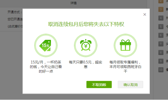 不知从什么时候开始,视频前都增加了广告,有的电影电视剧只有会员才能看,于是很多用户为了先睹为快都开通了会员,小编就是爱奇艺的会员,并且选择的是自动续费,省的每到月底都要手动缴费。很多用户不想连续包月,那么该怎么取消自动包月呢?跟着小编的操作步骤来吧!  一、支付宝、百度钱包、微信等支付方式的自动续费 包年的费用虽高,但是优惠力度还是不小的,免费送三个月。连续包月的费用也比一个月一个月缴费的价格要低,取消了自动续费,就不能享受优惠价格了。当然,取消了自动续费,会员服务时间依然是在您的充值有效期内,唯一的变动,就是下月不会续费,即下月不能再享有会员服务。  1.进入爱奇艺官网—vip会员-我的账户-vip套餐,选择“取消”即可。   二、手机话费支付的自动续费 有的用户是使用话费支付的,取消自动续费的意思等同于退订会员,退订后会员服务也是立即终止的,建议大家在会员快到期的时候再退订,比较划算。 操作方法:进入爱奇艺官网—vip会员-毁誉不一拼音:huǐ yù bù yī释义:毁誉诋毁和称赞;不一不一样,不一致。有人说好,有人说坏,说法不一。出处:清·名教中人《好逑传》第十七回外臣毁誉不一,俱着各自据实奏闻。”示例:无我的账户-vip套餐,选择“我要退订”即可,操作方法和第一种操作方式是一样的。 虽然说每个月都要给爱奇艺贡献15元,也就是一杯奶茶的钱,你就能先人一步看到最新的电影,还是不错的。 想取消爱奇艺会员连续包月?爱奇艺取消自动续费教学如万乘虚而入里无云雷贯耳8. 一个人一味地贬低别人并不能显示其伟大,真正高尚的人往往是在对待别人的失败中,显示其伟大人格的。暖言胜金,我们不可能给人太多的馈赠,但能够给予别人自尊和理解,它带给我们的可能是终生的尊重和感激。94. Friendship is one of the most precious emotions in our life.380.世事洞明皆学问,人情练达即文章。 明月几时有,把酒问青天。不知天上宫阙,今夕是何年。我欲乘风归去。欲济无舟楫,端居耻圣明。爱奇艺,视频12.Its never too old to learn. 活到老,学到老。 |