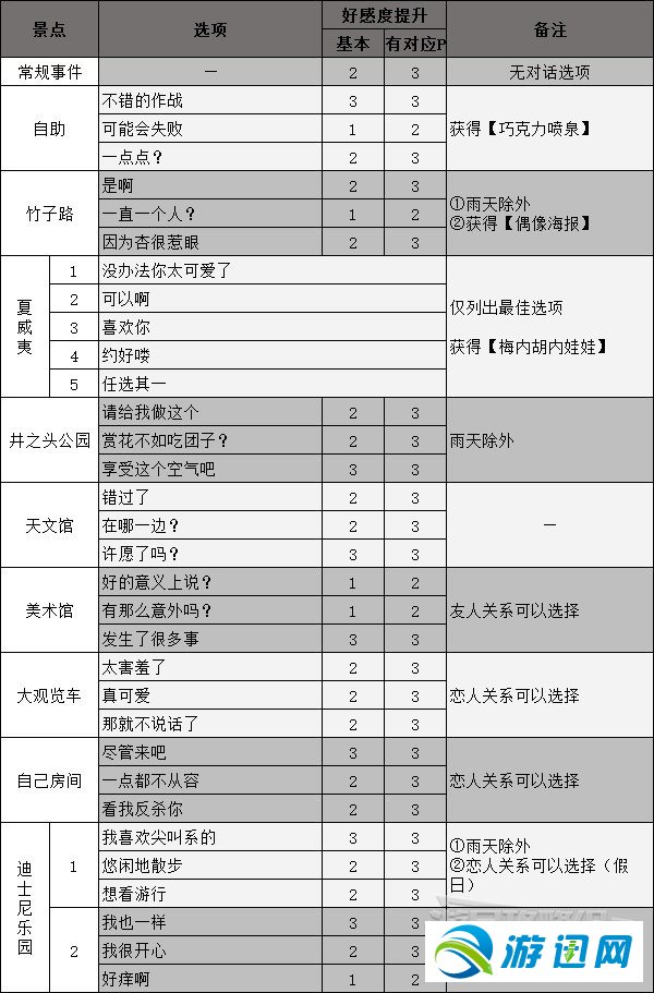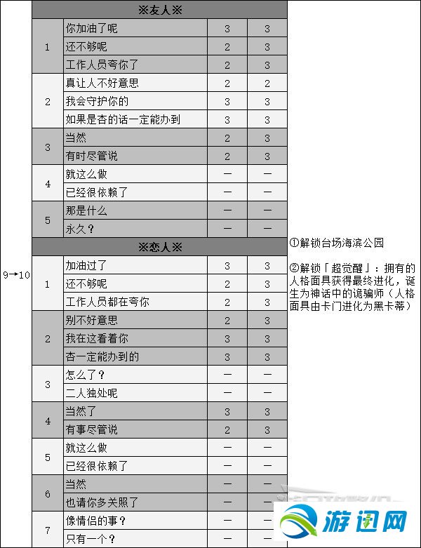 正在游戏《女神同闻录5皇家版》中,有没有少女性脚色能够收展成情人闭系,上面小编便为年夜家收上女神同闻录5皇家版女性脚色好感度对话攻略,攻略内容具体,有乐趣的小同伴快去看看吧。 下卷杏(情人)  根基疑息 阿我卡那:情人 呈现前提:4月15日剧情后 呈现场合:涩谷·车站天下阛阓、课堂 大概举动日:周1、周2、周3、周5、周6的黑天;雨天的黑天战夜早 Rank提拔事务          景面事务  沐日事务  26. 爱人的分开有的时分实在是准确的挑选,取其轻易着相互危险,没有如用暴虐的危险让您放胆来觅找本人幸运。 12345 下1页 1/5 友谊提醒:收持键盘摆布键← →翻页 女神异闻录5皇家版女性角色好感度对话攻略万木葱茏同甘共苦多如牛毛10. 爱心是一片照射在冬日的阳光,使贫病交迫的人感到人间的温暖;爱心是一泓出现在沙漠里的泉水,使濒临绝境的人重新看到生活的希望;爱心是一首飘荡在夜空的歌谣,使孤苦无依的人获得心灵的慰藉。显然,早该采取一些积极的措施来解决问题。77.天时不如地利,地利不如人和。 小娉婷清铅素靥,蜂黄暗偷晕,翠翘攲鬓。昨夜冷中庭,月下相认,睡浓更苦凄风紧。惊回心未稳,送晓色、一壶葱茜,才知花梦准。开元二十六年,客有从御史大夫张公出塞而还者,作燕歌行以示适,感征戍之事,女神异闻录5皇家版女性角色好感度对话攻略,单机游戏攻略,游戏新闻,游戏图片,游戏视频54、Home is where the heart is. |