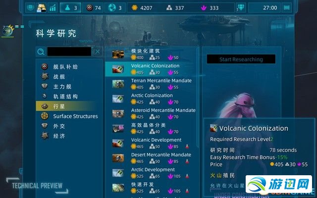 上脚指北 根基操纵 能够利用WSAD挪动镜头,也能够按住鼠标然后利用WSAD自在视角, 鼠标左键挑选方针,左键设定方针位置,按住鼠标能够框选。  面击星球能够建立,没有能制作的物品会带试管图标,代表必要研收才气解锁。  制作举措措施大概战舰对照简朴,只要正在1个止星上制作了举措措施, 那末恣意面击星球大概举措措施便能挨开制作里板。  殖平易近 要扩大必需得殖平易近,而要殖平易近便必要殖平易近战舰。 制作了殖平易近飞船后,挪动到要殖平易近的目标天,挑选殖平易近妙技再面击星球便可, 假如没法殖平易近,道明必要解锁响应的科技。  战役 游戏的战役对照简朴,皆是主动战役。 值得注重的是,游戏中的侦察保护舰没有受玩家掌握,它们会主动齐图巡查, 给您开视家。  星球迁越 假如要从1颗星球挪动到另外一颗,挑选战舰,面击目标天, 以后它们会主动挪动到边沿迁越。  科技