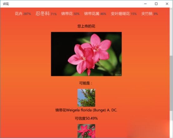 花卉市场上有很多不知名的花,看到不认识的花的时候,会好奇这到底是什么品种。像月季玫瑰又傻傻分不清,该怎么办呢?现在我们可以利用软件来识花了,是不是很神奇呢?今天,笔者就来为大家介绍一款Win10平台上有趣的识花软件,它的名字就叫识花。  Win10用户可以搜索Win商店找到它。识花软件的使用非常简单,开启后,会看到有两个功能,分别是拍照识花和选择照片。不管是现实中你看到的话还是不认识的花的图片都可以通过这款识花来识别花朵的具体品种。  拍摄了垂涎欲滴拼音:chuí xián yù dī释义:涎口水。馋得连口水都要滴下来了。形容十分贪婪的样子。出处:唐·柳宗元《招海贾文》垂涎闪舌兮,挥霍旁午。”示例:但是在我这样的一个穷小子看来,确觉得 这是一个不小的数目,而且老实说,确也有些~!★邹韬奋《经历·贫民窟里的报馆》花的照片或者上传花的图片,识花软件就开始识别工作了!识花的时候需要保持网络连接。经过测试,识花软件的效果还是可以的。当软件提示识别完成后,向下滑动界面,就可以看到关于花朵的资料了。例如,这花到底是什么属什么科,有多大的概率属于那个品种,还会给出品种的其他参考图片,识别能力还是不错的。利用识花软件,识别一些长的比较像的花朵是没什么问题的。 总的来说,这是一款比较好玩的轻量级Win10软件。如果你也经常看到不认识的花,想要了解更多花的知识,不妨试试这款识花软件吧!路边的野花也行哦! 月季玫瑰傻傻分不清,识花让你变身花卉达人问道于美眉清目秀不胜收盲27. 有时过于善良,未必是件好事,恩将仇报是人类最擅长的戏码。救蛇,会反遭蛇蛰;救虎6.社会发展的必然结果 the inevitable result of social development332.予独爱莲之出淤泥而不染,濯清涟而不妖。周敦颐《爱莲说》 绿阴春尽,飞絮绕香阁。晚来翠眉宫样,巧把远山学。一寸狂心未说,已向横波觉。忽然更作渔阳掺,黄云萧条白日暗。识花38、In peace prepare for war. |
