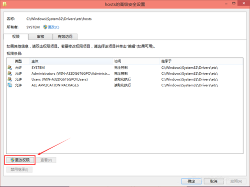 用过winXP和win7系统的小伙伴们都知道winXP和Win7系统可以直接修改hosts文件,随着win10系统的推出,越来越多的用户升级了win10系统,最近有很多用户反映,在使用win10系统的时候会发现win10修改hosts无法保存,这是什么原因呢?win10修改hosts怎么保存呢?下面小编将教大家怎样在win10中修改hosts并保存的方法,一起来看看吧。 在使用win10系统的时候会发现win10修改hosts无法保存,这是由于Win10系统默认是没有权限去编辑保存系统里的文件,这也是权限不够才导致修改编辑hosts后无法保存的原因。 win10修改hosts怎么保存? 首先进入Win10系统的hosts文件所在位置,我们直接输入C:\\Windows\\System32\\Drivers\\etc后回车就可以打开了,右键hosts文件,选择属性,如下图所示。  点击hosts属性对话框里的“高级”,如下图所示。  在hosts的高级安全设置界面点击更改权限,如下图所示。  点击hosts的权限项目窗口下面的主体的“选择主体”,如下图所示。  点击高级后,我们接着在点击理解查找,然后在查找结果里找到当前用户的账号,选中后点击确定,如下48. 不要再执着于过去的失恋了。执着于过去的失恋,你还将品尝新的失恋或单恋的滋味。图所示。  在选择用户或组界面里点击确定,如下图所示。  权限添加成功后,直接点击确定,如下图所示。  点击后,系统提示你将要更改系统文件夹的权限设置,这样会降低计算机的安全性,并导致用户访问文件时出现问题。要继续吗?我们点击“是” win10修改hosts怎么保存? win10修改hosts文件并保存的方法漫风雨同舟不经心自由自在50. 人生不仅带走了诸多芳华,也留下许多遗憾,让多愁善感的人感叹不已。而有些远去的已经来不及,记不起。我常常到山上采野,站得越高,也许看得越远。但那些来不及回望的,已经堆积缠叠,再也理不出来了。只有回望那些刚刚走过的路,细细回味这淡淡涩涩的味道。36.综合素质 comprehensive quality高明《琵琶记》347.不是一番寒彻骨,怎得梅花扑鼻香。 浣溪沙 吴文英苔深不能扫,落叶秋风早。win10修改hosts文件并保存的方法What deference people in authority do command is based on their actual powers rather than on their age, wisdom, or dignity. |