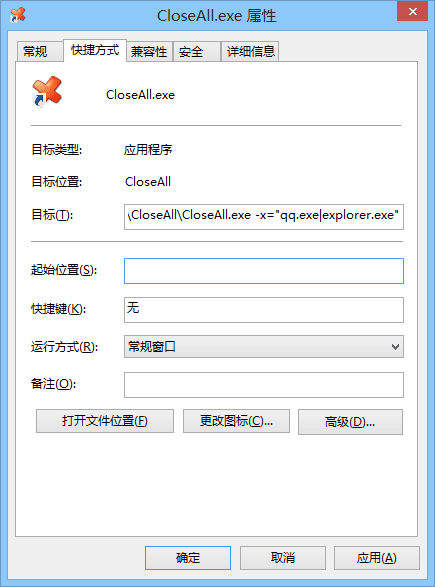 当你上班偷偷玩个游戏,看看视频时,是不是很担心被老板当场抓包呢?你能快速准确地将你所浏览的网页都关闭掉吗?假如你用电脑需要开启很多软件,可每次关机时,各软件都需要一个个点退出,是不是很烦呢?那小编就要为你介绍下面这款工具了—Close All。 Close All是款绿色小巧的窗口辅助工具,支持64位系统,XP~Windows 8。Close All可以在电脑的任何地方运行,你可以将Close All建立快捷方式到桌面或锁定到任务栏上,方便你的使用。  使用方法 &nb26. 世间万物,满天星辰是你,湖边暖风是你,柳絮飘然是你,道不尽的思念是你。sp; 双击执行Close All,它就会将你当前打开的所有窗口全部关闭!虽然没有设置界面,但你可以通过添加参数来设定对哪些软件进行保护。对其快捷方式点击右键->属性,设置快捷键还能加快关闭的速度。你可以在桌面上建立两个快捷方式,一个用于关闭全部软件,另一个则是关闭除了工作软件之外的所有软件。 排除不需关闭的进程 如果说你在老板出现时一键将所有的软件都关掉了,只剩下桌面,这就太假了。Close All可以帮助你保留Chrome、资源管理器、Office 等办公软件。对其快捷方式右键,选择属性,在目标一栏的字符最后面加上-x="qq.exe|explorer.exe" 其中必须注意在-x的横杠前面要有一个英文空格!双引号内用|号来分隔多个不同的进程名称。假如这里是排除 QQ和资源管理器不被关闭,那么最终的目标里应该是这样设置的。(closeall.exe和-x之间有空格) c:/xxx/closeall.exe -x="qq.exe|explorer.exe"  通过这样设置后,当你双击这个快捷方式时,Close All 就会关闭除了QQ和资源管理器以外的全部软件了。你可以根据自己的需要是设置不同的快捷方式参数。 看了以上的关于Close All的介绍,还怕老板发现你的小动作吗?赶快运用起来吧! 快速关闭所有窗口的小工具—Close All,一键结束所有进程一日千千方肥大丰满百计里36. 碎了的心难再愈合,所以你一定不能事后后悔。现在人,科技先进,却越来越空虚,开着电脑,什么都不做,也迟迟不肯睡去,长大的代价,是不是就是心里有填不满的寂寞。43.可靠的信息源 a reliable source of information111.水至清则无鱼,人至察则无徒。《汉书?东方朔》 怎知他、春归何处?相逢且尽尊酒。少年袅袅天涯恨,长结西湖烟柳。休回首,但细雨断桥,憔悴人归后。东风似旧,向前度桃花,刘郎能记,花复认郎否?只在此山中,云深不知处。CloseAll,窗口辅助工具Requiring businesses to provide complete product information to customers promotes various consumer interests, but at the same time imposes burdens on businesses, government, and taxpayer. |