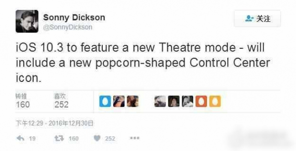 据资深爆料人Sonny Dickson的信息,iOS10.3将推出一项神秘的新功能——电影院模式。据悉,此系统是一个主要以iPad为中心的升级,那么ios10.3影院模式是什么?这个功能有什么用呢?接下来,就跟着小编一起来看看吧。 日前有传闻称,苹果将在1月初发布iOS 10.3的首个测试版本。当中包含名为“影院”的设备模式。  &nb村学究语拼音:cūn xué jiū yǔ释义:指迂腐浅陋的言辞。出处:无示例:这是一个严肃的问题,决不允许使用村学究语。sp;下图是Sonny Dickson在12月30日的推文,他写道,iOS10.3将新增电影院模式,包括一个全新的爆米花标志控制中心图标。  Sonny Dickson同时还发了一条推文,称iOS10.3的BETA1版将在1月10日推出。  ios10.3新功能影院模式介绍 本次的传闻来自苹果硬件爆料者Sonny Dickson,但由于没有任何来源引用,因此真实性成疑。无论如何,据Dickson爆料,iOS 10.3 的代号为「Erie」,其第一个 Beta 中将加入一个全新的「剧场模式」(Theater mode)以及一个爆米花形状的控制中心图标。 我们尚不清楚这个所谓的影院模式是如何工作的,但从它的名字可以推测出,它应该会激活一套适合在电影院中使用的设备设置,比如关闭声音和震动、屏蔽来电和信息、并降低屏幕亮度。 在此之前,苹果已经注册了多个描述相关系统设置调整的专利。但不同于本次传闻中这个手动激活的影院模式,专利中的功能要更加智能,它拥有一套位置感知解决方案,可根据手机的GPS位置和蜂窝信号三角定位来自动触发相关的手机设置。 Dickson表示,首个iOS 10.3测试版将在1月10日向开发者发布。而科技网站Apple Insider也指出,使用iOS 10.3系统访问该网站的流量也在最近出现明显增加,这也间接佐证了该升级可能会在近期推出的说法。 现在苹果对于 iOS 系统的更新速度明显更快了,在前段时间刚刚发布了iOS 10.2.1的第二个测试版本,当中包含一些小的bug修复和性能提升,还包含一些新的表情符号、对iPhone音乐应用的修改、以及新的TV应用的加入。 以上就是小编带来的iOS10.3影院模式的相关内容,如有疑问,可以随时与小编联系。 苹果ios10.3将推影院模式 ios10.3新功能影院模式介绍手舞足东逃月出东墙西散蹈15. 梨子树上挂满了一个个黄澄澄的梨子,就像一个个可爱的小葫芦。走近一看,梨子脸上还长着许多小雀斑呢!梨子很多,把树枝越压越弯,越压越弯,有的梨子干脆一屁股坐在地上。post 张贴 / 发布;be interested in 对……感兴趣197.露从今夜白,月是故乡明。《月夜忆舍弟》 法曲献仙音 王沂孙剑河风急雪片阔,沙口石冻马蹄脱。ios10.3,影院模式80、Give as good as one gets. |