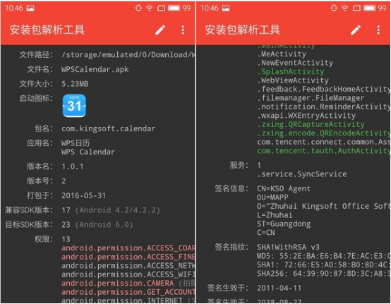 我们安卓手机上很多软件都是通过APK安装包来安装的,安卓App的APK安装包包含了很多信息,像开发商的签名、App的图标等等都在其中。有时我们需要对APK安装包做一些编辑修改,可是要怎么做呢?安装包解析工具是一款相当实用的APK工具,可以将杂乱无章的APK文件名重命名为规则的名字,提取App的图标等等。 安装包解析工具是用来解析APK安装包,从而实现各种功能的。而且非常干净小巧,体积仅有161K,权限只申请了一个。而且在安装后,它不会在桌面产生快捷方式,真是良心制作啊!  安装后,就可以选择用安装包解析工具App来开启APK了。安装包解析工具App能够解析出APK文件的非常多的信息,例如App的名字、版本号、打包时间、SDK版本、所请求的权限以及签名信息等等。借助这些信息,有经验的朋友可以判断出某个APK包是否安全,避免安装某些流氓App。  除了能够解析出APK安装包的信息外,这款工具还能够重命名APK文件以及提取App的图标。App提供了三种APK包的重命名规则,能够根据应用的名字重命名APK包。,例如你碰到一个名字乱七八糟的APK,根本不知道这是什么App的安装包,App就可以自动识别这个APK对应的是什么应用,并根据应用的名字重命名了。同时,安装包解析工具还能够把App图标提取到设备的图片目录下,使用起来很方便。 存亡未卜拼音:cún wáng wèi bǔ释义:卜猜测,估计。或是活着,或是死了,不能预测。出处:明·冯梦龙《喻世明言》卷十七况宗族远离,夫家存亡未卜,随缘快活,亦足了一生矣。”示例:无 总之,这款安装包解析工具用起来还是很顺手的,有需要的可以试试。 怎么编辑修改APK文件?APK安装包解析工具使用介绍心猿意金碧辉煌观者如云马49. 是的。我很重要。我们每一个人都应该有勇气这样说。我们的地位可能很卑微,我们的身份可能很渺小,但这丝毫不意味着我们不重要。重要并不是伟大的同义词,它是心灵对生命的允诺。——毕淑敏《我很重要》60. I’m disappointed in the performance of our team at the sports meeting.傅玄122.近朱者赤,近墨者黑。 寂寞,念行乐。甚粉淡衣襟,音断弦索,琼枝壁月春如昨。怅别华表,那回双鹤。相思除是,向醉里、暂忘却。移家虽带郭,野径入桑麻。APK安装包,APK安装包解析工具,APK工具8、Faith can move mountains. |
