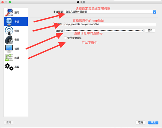 OBS大家可能不常用,它是一款永久免费的直播软件,全称是Open Broadcaster Software。OBS支持Windows 7/8/10, Linux,并且还支持Mac OS X系统,无广告,适用于32和64位的各种电脑,适合玩斗鱼直播软件的主播使用。  1、下载安装OBS Mac版  2、这个时候点击设置,进入如下界面:  3、通用中可以设置OBS的语言,点击串流会看到如下界面:   2. 我们的生活有太多无奈,我们无法改变,也无力去改变,更糟的是,我们失去了改变的想法。; 4、串流类型选择自定义流媒体服务器,下面的URL和流密钥需要根据直播间中的直播信息进行填写,登陆斗鱼账号,点击用户名--->个人中心--->主播相关--->直播设置--->进入直播房间,然后可以看到下图:  5、这个时候点击获取推流码,即可看到rtmp地址和直播码,将其填入OBS中串流的设置中。 6、这个时候OBS的主页面还是黑色的,没有任何的输入,我们要点击场景下面的+添加一个场景,点击来源下面的+添加一个来源,一般我们会选择视频捕获或者只窗口捕获 视频捕获是直播电脑摄像头录取的视频,窗口捕获是直播电脑上打开的窗口,这里以窗口捕获为例,添加完窗口捕获之后,点击窗口捕获下面的小齿轮: 7、然后选择需要直播的窗口,选择完之后,点击确定。这个时候点击开始串流,并且打开直播房间的开始直播就可以了。 还有个小问题,小编顺带说一下,Mac电脑使用OBS的时候往往外界的声音可以录取,但是电脑自身发出的声音,比如音乐,某些网站的声音,是不能直播的,这时候我们需要下载一个软件,soundflower,下载之后,进入系统偏好设置->声音-->输出,然后选中Multi-Output Device 然后点击OB中的视频,将音频中的桌面音频设备设置为Soundflower(2ch), 如果噪音太大,这个时候可以点击麦克风下面的齿轮,设置噪音阈值,来对噪音进行过滤。 如果你还是不会设置OBS,就再仔细的看一遍吧! OBS Mac版怎么玩?Mac版OBS软件设置流程教学龙克己奉真才实学公骧虎步42. 向来就不太喜欢幼稚的男人。男人幼稚虽然和年龄有关,但是我觉得大多就是个人的素质。有些人,一辈子就这样低俗下去。看见别人遥不可及,恨恨。从我们上次见面到现在已经有十个多月了。284.春风又绿江南岸,明月何时照我还。《泊船瓜洲》 黄州定惠院寓居作愈拜稽首蹈且舞,金石刻画臣能为。OBSMac版,直播软件It is high time that we put an end to the deep-seated (unhealthy / undesirable / deplorable) situation (tendency / phenomenon) of… |