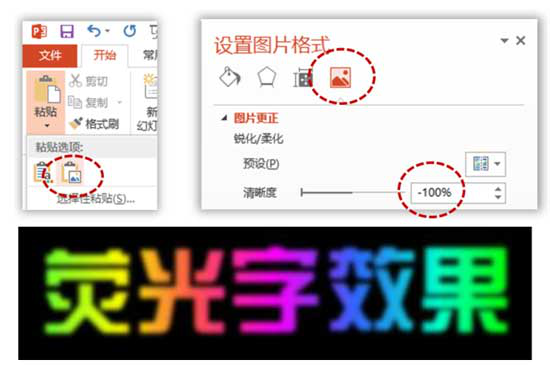 看着别人的PPT的字体都很好看,可自己却不会做。PPT虽然可以直接为文字设置发光效果,但发光颜色仅限于单色,整体效果也不是特别好。所以今天小编就来教大家怎么用PPT制作荧光字效果,不会的学起来吧! 1、打开PowerPoint,在页面上单击右键,设置背景格式。将背景填充设置为黑色的纯色填充。17. 我想当幼儿园老师,像妈妈一样,管着一群小朋友,能唱会跳还会画画弹琴,关键小朋友都听老师话。然后输入文字,字号设置为72磅以上,并将该文本框复制一份备用。  2、选中文本框,将文本的填充方式设置为渐变线性填充,方向线性向右,角度为0°,渐变光圈设置参照下方首图,得到下方第二图的效果。  3、选中文本,复制并选择性粘贴为图片;选中图片,在图片格式菜单中调整清晰度为-100%。  4、将模糊化后的文字图片复制一份,与原图片水平略错开放置以放大荧光效果,将第一步预留的白色文本置于两张图片之上如下图所示。最后将三者上下居中对齐即可。  只要你按照以上步骤做就能做出好看的荧光字了。 想要制作荧光字效果很简单,PPT制作荧光字效果教学杂乱无章万利欲熏心心安理得木葱茏21. 阳光照在波光细细的湖面上,像给水面铺上了一层闪闪发光的碎银,又像被揉皱了的绿缎。38. We should spare no effort to beautify our environment.210.自古逢秋悲寂寥,我言秋日胜春朝。晴空一鹤排云上,便引诗情到碧霄。《秋词》 西湖春感西当太白有鸟道,可以横绝峨眉巅。荧光字效果,PPTAnother reason why I dispute the above statement is that… |