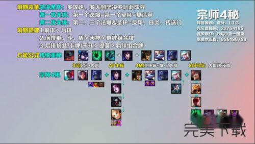 云顶之弈10.22版宗师秘术师是一个非常强势的阵容,云顶之弈10.22版宗师秘术师阵容怎么玩呢,还不清楚的小伙伴们快来看看这篇关于云顶之弈10.22版宗师秘术师阵容玩法攻略吧。 云顶之弈宗师秘术师阵容玩法攻略  1.重秘优点:有锤石人马两张低费,且有重装转,成型快;锤石加蛇女的稳定双夜幽;控多 2.宗秘优点:慎站的坑位是秘术,2星刀妹比找2星剑魔猪妹简单 3.共性:两种羁绊组建目的均为拖物理阵容时间,7级宗秘比重秘脆,完全体宗秘强度更高 万能公式结构 重/宗(日炎反甲传送门)+AP核(法爆复活)+4秘(圣杯猫)+大哥 开局条件 开局选秀+3轮小野决定出门装备,多攻速请走寒冰/阿卡丽;多大剑走玉剑男刀。男刀在PBE下个版本的改动是跳向护甲最低的单位,双版本都稳站T0,装备合适玩准没错,而这套宗秘实际上在11.2已经砍过一刀,只有出门看得到圣杯、法爆、复活甲的时候建议玩 装备 2阶段中日炎、反甲、传送门、法爆、复活甲、圣杯的表现优于水银、蓝BUFF等装备,有就直接做,能让你在2阶段赢在起跑线,简单来说就是2阶段从装备上就开始抢节奏 天选(所有人都可能成为天选) 全员天选是这套阵容最大的亮点,但莫甘娜被砍过以后,确实感觉不到伤害,所以有阿狸依然推荐带阿狸 A.天选重/宗、秘都可以减一个人口凑出4重/3-4宗/4秘 B.天选明昼的阿狸猫咪千珏,可以不要提莫出开4明昼(不推荐) C.天选双法的阿狸,搭配莉莉娅可以开3法 D.天选双玉剑的莫甘娜可以搭配风女、刀妹选开4玉剑(比阿狸弱) E.天选双耀光的莫甘娜自带debuff 升级节奏 保血量激进派,7级前按如图所示抓牌,矛盾点在于重装和宗师一起抓会卡自己经济,分清手里什么牌偏多,丢掉另一副,但锤石必留,原因如下: 1.7级要开锤石+任意重+慎+刀妹——2重2宗作为前排,而且要舍得花钱D质量,不然前排太脆 2.锤石和蛇女提供稳定2夜幽补AP核的输出 进阶强化 4-1上7开搜天选,找到适合自己队伍的天选决定了你上8的速度,这套阵容无论是哪个天选,8级小队一定是7人组+1个大哥;如果永恩来的慢,那就是6人组+2个大哥。 而沙皇、劲夫、时光都是空位的最佳候选人,莉莉娅或者夜幽转可以帮助你凑出2夜幽,且如果8级运气足够好,甚至可以保留2秘(圣杯猫+慎)拆掉4秘加挂,宗师里面甚至可以只保留2星永恩和慎,再挤出一个44. 感情的悲剧性就在于:并无银河隔断双星,而彼此早已相忘于江湖。单位去加大哥。当然也可以冲9级,但冲9级的钱往往能帮助你在8级找到2星大哥和追一张主队伍的3星牌! 站位 主队:圣杯猫贴着阿狸,蛇女站前排怼对面的大部分单位 永恩:前后左右别有人,不然吃不到浪人的盾,蓝BUFF、科技枪最适合 沙皇:多利用沙兵去骗对面狐狸假赛,或者吃剑魔的拉,青龙刀最适合 劲夫:扔第一排,法强装、肉装都可以消化 莉莉娅、盲僧:看装备、星级,再决定是否能站第一排打控制 另外遇到刺客局,可以让永恩/慎/刀妹往下挪,决赛圈多看看吹风、法衣,阿狸和猫一起调位置! 以上就是云顶之弈10.22版宗师秘术师阵容玩法攻略,希望大家喜欢,更多内容敬请关注完美下载网。 云顶之弈10.22版宗师秘术师阵容怎么玩?云顶之弈宗师秘术师阵容玩法攻略悬崖峭狂风暴雨壁秋风送爽21. 青春是一弯新月,是遗憾。青春总是不完满的。正因为不完满就多了一份不一样的体验,多了一种完美的希冀。The job was hard, boring and seemed endless, which made me so tired that I almost quit half way.195.细雨鱼儿出,微风燕子斜。《水槛遣心二首》之一 丁未冬,过吴松作313王维:秋夜曲68、Do not teach fish to swim. |