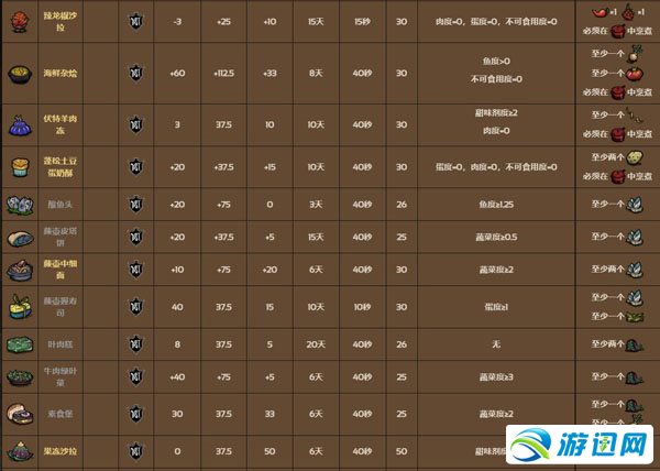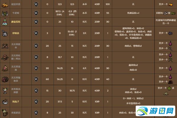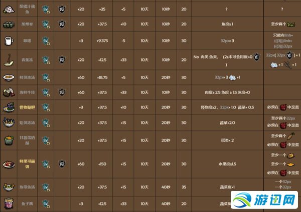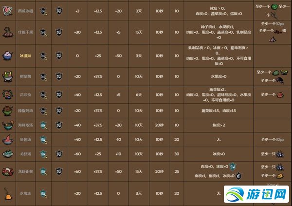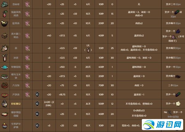 共有58种食谱能够造做,每种摒挡皆有它共同的造做圆法战结果。烹调锅会结算锅内的总食材系数,然后产出所对应的摒挡。假如个中的食材系数没有谦足任何摒挡的配圆,则会发生得败摒挡。  食谱培根煎蛋、胡蝶紧饼、水龙果派、鱼肉玉米卷、鱼排、果酱、蛙腿3明治、火果圣代、蜜汁水腿、蜜汁卤肉、肉串、曼德推草汤、肉丸的配圆以下图所示:  肉汤、怪物千层饼、波兰火饺、芝士蛋糕、北瓜饼干、蔬菜纯烩、酿茄子、太妃糖、水鸡年夜餐、鰻鱼摒挡、华妇饼的配圆以下图所示:  西瓜冰棍、十锦干果、冰淇淋、鳄梨酱、花沙推、辣椒炖肉、海陈浓汤、鱼翅汤、龙虾汤、龙虾正餐、火母冻的配圆以下图所示:  酸橘汁醃鱼、减州卷、咖啡、喷鼻蕉冻、陈贝浓汤、海陈牛排、怪物鞑靼、贻贝浓汤、苦薯蛋奶酥、陈果可丽饼、热带鱼汤、鱼子酱的配圆以下图所示:  荨麻卷、辣蔬菜鸡尾酒、蛇骨汤、蒸水腿3明治、冰茶、硬糖蛋糕、硬壳玉米饼、8宝饭、芦笋汤、彩虹糖豆、爆炒挖馅辣椒、死陈萨我萨酱的配圆以下图所示:  奶油土豆泥、花式盘旋15. 器材固然拾了,便算它再贵重又有何防,究竟咱人是好好的,懂吗?那叫“留着青山正在,没有怕出柴烧”。但愿那件事变没有会再影响到您的心境。块茎、蔬菜鸡尾酒、芦笋热汤、骨头汤、蓝带鱼排、怪物鞑靼、收光浆果慕斯、可怕国王饼的配圆以下图所示:  辣龙椒沙推、海陈纯烩、伏特羊肉冻、疏松土豆、蛋奶酥、酿鱼头、藤壶皮塔饼、藤壶中细里、藤壶握寿司、叶肉糕、牛肉绿叶菜、素食堡、果冻沙推的配圆以下图所示:  虎魄好食、牛奶帽、蘑菇蛋糕、舒缓茶、无花果烤串、无花果蛙、腿3明治、无花果意里、无花果酿、象鼻、冰喷鼻蕉冻、唇蜜、炖兔子、喷鼻蕉奶昔的配圆以下图所示:  饥荒食谱大全以及配方2023 饥荒最新的食谱大全以及配方昂穿鸡鸣狗盗梭往来首嘶鸣64. 尘世是复杂的,个性是在生存激烈的今日,为了生存,人们往往疲于奔命,由此暗淡了笑容。其实我们大可不必如此,我们要坦诚地对待生活,绽放笑颜,更会成就事业,成就自己,取得更骄人的成绩。我亲切、随和,总是乐于助人。346.路见不平,拔刀相助。《陈情高卧》 千秋岁引 王安石近泪无干土,低空有断云。饥荒食谱大全以及配方2023,饥荒最新的食谱大全以及配方,单机游戏攻略,游戏新闻,游戏图片,游戏视频66、Fact is stranger than fiction. |