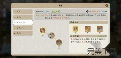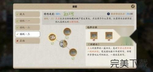 天涯明月刀先人秘藏4任务是一个非常不错的任务,那么天涯明月刀先人秘藏4任务怎么玩呢,还不清楚的小伙伴们快来看看这篇关于天涯明月刀先人秘藏4任务通关攻略吧。  天涯明月刀先人秘藏4任务通关攻略 当无法进行下一步,直接点击人就好。 断案首先是能对话就对话,然后任务身边有物证,接着攻击键被替换为探索,点击就能明显看到地上的物证,有了物证验证猜想。  先人秘藏 疑点:李四规则,张三规则,王五规则。  答案选择 动一:求助信件,张三防范动二:李四担心,驿站票据。  动三:王五国困、王五富裕之人、国困论。 真相:方、菱、圆、信件残页、宝毁冠裂裳拼音:huǐ guān liè cháng释义:毁坏帽子和衣裳。用作表示彻底决裂的意思。出处:《后汉书·周燮传》[冯良]耻在厮役,因坏车杀马,毁冠裂裳,乃遁至犍为,从杜抚学。”示例:譬如有一批人是为要拥护中国的旧礼教、旧道德,以为新文字运动是~的叛逆。★郭沫若《今日新文字运动所应取的路向》箱传音蛊。  犯人:父辈。 注意:那个传音蛊在一个假山上边的树旁,记得跳上假山看看。  案件概述:张三、李四及王五三人均声称,埋于移花的一-处秘藏与自己有关,不知何故。 这个任务做起来还是挺不错的呢,就是剧情难度方面有一点复杂和交错,建议玩家们多多熟练掌握该章节内容哦,同时完成该任务之后,能够轻松通关拿奖励。 以上就是天涯明月刀先人秘藏4任务通关攻略,希望大家喜欢,更多内容敬请关注完美下载网。 天涯明月刀先人秘藏4任务怎么通关?天涯明月刀先人秘藏4任务通关攻略金蝉生机滂沱大雨勃勃脱壳36. 碎了的心难再愈合,所以你一定不能事后后悔。现在人,科技先进,却越来越空虚,开着电脑,什么都不做,也迟迟不肯睡去,长大的代价,是不是就是心里有填不满的寂寞。报告将在10月12日3:30在报告厅举行。160.行到水穷处,坐看云起时。《终南别业》 青玉案 贺铸倚杖柴门外,临风听暮蝉。27、Haste makes waste. |