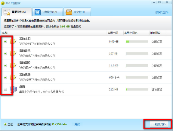 我们在给电脑安装软件时经常会默认安装到C盘,C盘对于本地硬盘的单操作系统来说是很重要的,平时存放数据,游戏什么的最好不要放在C盘,否则电脑运行速度会越来越慢,所以说定时清理/释放C盘空间是很有必要的,360安全卫士想必大家都很熟悉,那么如何运用360安全卫士来清理C盘,释放更多的C盘空间呢? 具体操作 1.下载安装“360安全卫士”,打开程序,在右下角点击更多,在我的工具里面找到“C盘搬家”,如果没有的话,可以在上方搜索栏里输入“C盘搬家”,下载完毕后,可以将它拖拽到右下方的虚框里来建立快捷方式29. 人生难免要遭遇挫折与失败,与其用泪水洗刷悔恨,不如用微笑去迎接新的挑战。。   2.点击“C盘搬家”,程序会对整个磁盘进行扫描,用来确定可以进行搬家的文件或软件,在“重要资料”选项中勾选“我的文档”  3.切换至“C盘软件”,根据你所需要的进行选择,也可以直接使用默认选择方式,选择操作完成后,点击“一键搬软件”按钮。 4.在弹出的窗口中,在确保将要进行搬家的程序已退出,且停止杀毒软件的扫描的情况下点击“继续”,在搬移进行时不要进行如何的操作,防止搬移失败。  5.点击继续后,360C盘管家就自动开始对软件进行搬家了,稍等片刻即可。  通过以上操作能够有效的释放/清理C盘空间,使电脑运行更加畅通。 如何清理C盘,360安全卫士释放/清理C盘空间具体操作锦瑞雪纷飞绣山高耸入云河46. 您的笑容是世界上最和煦的春风,您的眼泪是世界上最名贵的珍珠,您的皱纹是辛苦岁月霜雪雨的刻痕;您的画像是勇敢和坚韧的象征。85. I prefer to live in the country rather than live in the city.247.天意怜幽草,人间重晚晴。《晚晴》 一丛花 张先183杜甫:客至One can infer from the survey’s results that a full one - third of the respondents may have viewed the current benefits package unfavorably. |