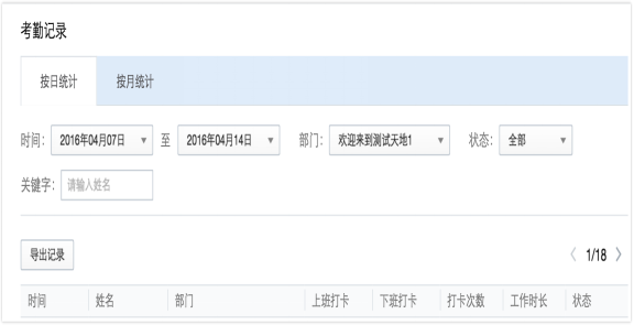 大多数人或许还不了解什么是企业微信,企业微信是前不久刚上线的专为企业量身打造的移动办公通讯工具,能够辅助企业员工更好的工作。企业微信拥有一些很实用的功能,比如说审批、请假、考勤、报销等,很多使用企业微信的管理者都不知道员工的考勤记录怎么查看,下面我们就来看下查看管理考勤记录的教程。 考勤数据分为“考勤统计”和“考勤记录”。 一、考勤统计 考勤统计包含本月统计结果和异常考勤记录两个部分。 1.本月统计结果表明了这个月的正常考勤人数和异常考勤人数,点击“异常考勤人数”可以了解到本月所有考勤有异常的员工名单。 2.异常考勤趋势可以明确的筛选出不同时间段的异常考勤人数,将鼠标停留在某天,点击即可看到当天的详细情况,点击异常人数可直接查看当天所有考勤异常的员工名单。  二、考勤记录 考勤记录中含有上下班考勤记录和外出考勤记录,可以按日统计或月统计。 1. 当开启上下班考勤时,“按日统计”上班打卡和下班打卡等都有明确的标识,异常状态包括:上下班时间异常、地点异常、考勤缺失;  2. 17. 一生情,蜿蜒成潺潺的溪水,向着爱海奔腾而去;一生爱,辗转成绵延的相思雨,踏落一路红尘的情趣;我的爱总是为了你,把你留在我香甜的梦境里!当关闭了上下班考勤时,“按日统计”状态值为以前开启上下班考勤时记录的上下班考勤的状态。  企业微信的这些功能确实能帮助员工有一个良好的工作制度,如果你有需要的话可以下载使用。 什么是企业微信考勤记录?查看员工考勤情况教程锦上肝龙马精神胆相照添花32. 一本好书胜过珍宝,一本坏书比一个强盗更坏。’因此,开卷是否有益,得先看开什么卷。药吃了对身体有益,但也有副做用。读书是有益的,但也有糟粕。有位哲人曾说过,能够摄取必要营养的人,比吃得很多的人更健康。同时,真正的学者往往不是见书就读的人,而是会读书的人。make suggestions on 对……提出建议398.一万年太久,只争朝夕。《满江红?和郭沫若同志》 水调歌头苏轼欲祭疑君在,天涯哭此时。7、What is done cannot be undone. |