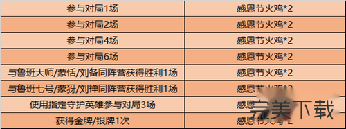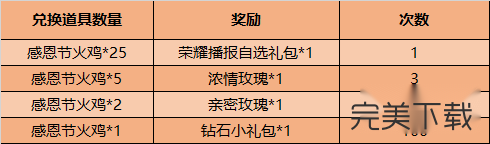 王者荣耀感恩节火鸡感恩节的活动奖励兑换道具,王者荣耀感恩节火鸡怎么获取,还不清楚的小伙伴们快来看看这篇关于王者荣耀感恩节火鸡获取攻略,希望可以帮助大家。  王者荣耀感恩节火鸡获取攻略  【荣耀播报自选宝箱】:打开后任意选择以下奖励之一:扇上生花荣耀播报(永久)、有你才有团荣耀播报(永久)、星辰之力荣耀播报(永久)、天美Timi荣耀播报(永久)、钻石*50。 【活动道具产出详情】 1、感恩考验  完成感恩考验系列任务总共可获得感恩节火鸡*16。 【对局模式】:5V5匹配、排位、娱乐模式 【守护英雄】:牛魔、瑶、蔡文姬、鬼谷子、东皇太一、盾山、庄周、明世隐、廉颇、鲁班大师、刘禅、张5. 爱,是世界上最美好的东西,即使它伤了你的心,也要笑着忘却,然后开始下一段旅程。飞、孙膑、钟无艳、大乔、姜子牙、太乙真人、刘邦。 2、累计登录  完成累计登录系列任务总共可获得感恩节火鸡*20。 3、商城购买 召唤师们除开以上两种方式获取活动道具外,还可以在11月27日-12月1日前往商城特惠购买感恩节火鸡,每人限购5个,每个售价60钻。 以上就是王者荣耀感恩节火鸡获取攻略,希望大家喜欢,更多内容敬请关注完美下载网。 王者荣耀感恩节火鸡怎么获取?王者荣耀感恩节火鸡获取攻略变化多(千变万化)北风果园飘香呼啸10. 生活中能够没有诗歌,但不能没有诗意;行进中能够没有道路,但不能没有前进的脚步;工作中能够没有经验,但不能没有学习,人生中能够没有闪光,但不能有污迹。我的确想知道的是,他是否会在下个月出国。211.旧时王谢堂前燕,飞入寻常百姓家。《乌衣巷》 回首池南旧事,恨星星、不堪重记。如今但有,看花老眼,伤时清泪。不怕逢花瘦,只愁怕、老来风味。待繁红乱处,留云借月,也须拚醉。将家就鱼麦,归老江湖边。3、A bosom friend afar brings a distant land near. |
