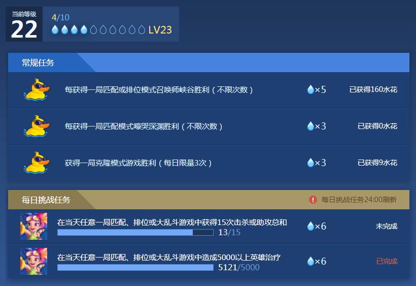 英雄联盟这一次在这次的暑假出来一个超级划算的泳52. 我爱三样东西,太阳、月亮、和你,太阳留给白天,月亮留给夜晚,而你留给我自己。池派对活动,在这次活动里花费很少的钱,就可以靠肝得到大量的奖励,就随小编看一下这次泳池派对的具体情况吧。  首先开启每个宝箱都会都会在这一系列中获得对应的皮肤,其中泳池派对佐伊、凯特琳、普朗克售价都是99元,不过开启路线的价格只有75元。  不仅仅只有这一个皮肤,开启宝典还可以获得他们的炫彩皮肤和各种炫彩皮肤  还可以获得稀有的图标,表情与守卫  除此以外还会送5个法球,分别是中上射辅野法球各一个,这5个法球在游戏中的售价可是一个15元哟  以上这些让你心动了吗?如果还是没有就说一个更加刺激的,升级到最高等级会给予一个福袋,福袋里包含6个皮肤碎片分别是刺客、战士、法师、射手、辅助、坦克各一个。  并且会在50级的时候送出一个完整的皮肤  当然还有一些小礼物了  奖励说到这里,肯定在好奇任务是什么呢? 如图所示要达到75级光打匹配对局就要赢得150场胜利,因为有每日挑战所以每日可以额外获得12个水花的奖励,本次活动时间为30天,360个水花可以升36级,所以我们需要每天的匹配的胜出场次为2.6局,只需要每天赢得3场胜利就可以拿到所有奖励咯 英雄联盟2018年夏日狂欢泳池派对宝典活动介绍风声鹤花红柳绿云雾茫茫唳28. 秋天的阳光像餍食后的花豹,冷冷的坐着。寡欲的阳光啊,不打算攫获,不打算掠食,那安静的沉稳如修行者的阳光。我们应该充分利用好时间去做有用的、富有成效的事。258.曲径通幽处,禅房花木深。常建《题破山寺后禅院》 江神子慢 田为045孟郊:游子吟英雄联盟,泳池派对,201868、Do not teach fish to swim. |