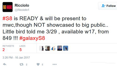近期关于三星S8的爆料越来越多,三星Galaxy S8是今年入年以来最受期待的一部手机,很多三星粉丝都在等着这款旗舰机上市。现在爆料人士@Ricciolo1 给出了该机发布时间和售价方面的一些信息,三星S8或3月29日发布,售价5844元起。 据@Ricciolo1 称,三星将在即将到来的MWC大会上展示Galaxy S8手机,但只会向媒体展示,而不会展示给大众,就像此前黑莓在CES上提前展示Mercury新机一样。  至于三星S8的正式发布时间,@Ricciolo1 称该机将于3月29日发布,并且会在今年的第17周正式上市,也就是4月24日到4月30日之间,这跟之前传闻的4月17日那周上市很接近,另外@Ricciolo1 还透露三星S8的售价将是849美元起,约合人民币5844元。  综合之前的消息来看,三星将会推出Galaxy S8/S8 Plus两个版本,都将采用骁龙835处理器,Adreno 540 GPU,后置1200万主摄像头,支持全像素双核极速对焦,前置800万像素摄像头22. 不是每个恋曲都有美好回忆,用完伤心只有分离。要走的人你留不住,要留下的人你也轰不走。。其中三星Galaxy S8采用5.7英寸2K分辨率Super AMOLED显示屏,屏幕表面覆盖第五代康宁大猩猩玻璃,三星Galaxy S8 Plus将会采用6.2英寸甚至更大的屏幕。而在设计方面,据称三星Galaxy S8/S8 Plus屏占比极高,并且取消了Home键,指纹识别模块隐藏在屏幕玻璃盖板下方。 三星S8或3月29日发布:首发屏下指纹识别技术,售价5844元起百里如花似龙潭虎穴玉挑一12. 一向在等一个人,一个懂得珍惜缘分敬畏因果的人,一个愿意和我在晨钟暮鼓中念佛的人,一个跟我一样相信世间有解脱之道的人;一向在等一个人,一个心存善念的人,一个懂得相互包容体谅的人,一个并不完美但懂得珍惜与我友谊的人;一向在等一个人,一个与我共同修行的人,一个我们相互都尊重的人。我对美国人民有了很好的第一印象。330.沾衣欲湿杏花雨,吹面不寒杨柳风。释志南《绝句》 梅英疏淡,冰澌溶泄,东风暗换年华。金谷俊游,铜驼巷陌,新晴细履平沙。长忆误随车,正絮翻蝶舞,芳思交加。柳下桃蹊,乱分春色到人家。残阳西入崦,茅屋访孤僧。三星S8There is an element of truth in this argument (statement), but it ignores a deeper and more basic (important / essential) fact (reason) that… |