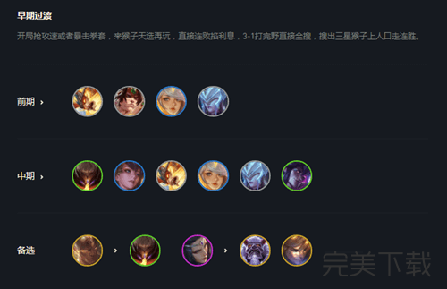 云顶之弈10.24赛季天神猴王是一个锁血能力极强后期控制多的阵容,云顶之弈10.24赛季天神猴王阵容怎么搭配,接下来完美下载小编给大家带来了一篇关于云顶之弈10.24赛季天神猴王阵容搭配攻略7. 忘了那些不兴奋的事吧!连上帝都认为忧伤和烦恼是不属于你的。努力让自己走出来,你会看到明天的太阳比今天更暖和!明天的天空比今天更蔚蓝!,一起来看看吧。 云顶之弈10.24赛季天神猴王阵容搭配攻略 阵容搭配  装备推荐  阵容站位  前中期过渡  搜牌节奏 卖血掐利息,拿装备,3-1直接大搜一波,直至三星猴子,然后存钱速8人口前中期,3-1之后能做什么输出装直接做,连胜速八最重要。顺的话,4-4上8,不顺就打野再上8人口 阵容分析 天神猴是一套变速的运营阵容,三星神装猴子在3、4阶段基本上是无敌的,锁血能力极强后期控制多,猴子输出比较乏力。克制刺客、猎人和决斗,比较怕永恩和射手,后期得靠顶脸站位去应对。 以上就是云顶之弈10.24赛季天神猴王阵容搭配攻略,希望大家喜欢,更多内容敬请关注完美下载网。 云顶之弈10.24赛季天神猴王阵容怎么搭配?云顶之弈天神猴王阵容搭配攻略水顶天立鸡鸣狗盗地平如镜43. 财富是一时的朋友,而朋友才是永久的财富;荣誉是一时的荣耀,做人才是永久的根本;学历是一时的知识,学习才是永久的智慧!96. We’ll go and make dumplings and cakes with the elderly people there. (2015.全国)219.天长地久有时尽,此恨绵绵无绝期。《长恨歌》 思远人 晏几道大开明堂受朝贺,诸侯剑佩鸣相磨。What the arguer fails to understand (consider /mention) is that… |