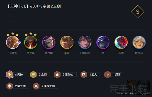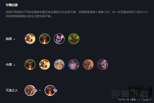 云顶之弈10.24赛季天神下凡阵容怎么搭配呢,一定有小伙伴们不知道吧,还不清楚的小伙伴们快来看看这篇关于云顶之弈10.24赛季天神下凡阵容搭配攻略,希望大家喜欢。 云顶之弈10.24赛季天神下凡阵容搭配攻略 阵容搭配  装备推荐  阵容站位  前中期过渡  搜牌节奏 41拉七人口小搜一波牌质量,不要花太多,存更多经济更早拉八人口,因为现在七人口四费卡概率太低了盲僧没来之前用猴子代替,或者有天神转职。后期运营,八人口卡利息d三星武器,三星刀妹,其他质量卡二星,要是经济允许追三星狼人就基本稳了。也可以考虑要不要玩九五。 阵容分析 狼人没水银的话比较被射手阵容克制。 以上就是云顶之弈10.24赛季天神下凡阵容搭配攻略,希望大家喜欢,更多内容敬请关注完美下载网。 48. 如果你觉得电影精彩,那是因为你的生活太过平淡。因为最精彩的情节,永远出现在真实的生活中。 云顶之弈10.24赛季天神下凡阵容怎么搭配?云顶之弈天神下凡阵容搭配攻略水泄屈指可数不电劈石击通44. 诚实是人心灵纯净的折光,不仅仅能够照亮自己,也能温暖他人。一个人拥有了诚实,也就拥有了“生命的黄金”。50.科技的飞速更新 the ever-accelerated updating of science and technology264.他年我若为青帝,报与桃花一处开。 黄巢题《菊花》 一点残红欲尽时,乍凉秋气满屏帏。梧桐叶上三更雨,叶叶声声是别离。休问梁园旧宾客,茂陵秋雨病相如。41、Meet plot with plot. |