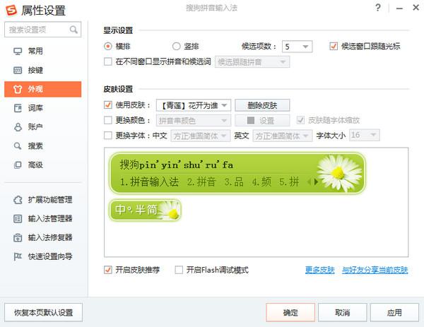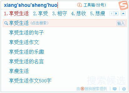输入法软件是我们手机、电脑的装机必备软件之一,目前市面上的输入法软件种类多样,功能各不尽同。搜狗拼音输入法可谓是目前使用用户人数最多、最受欢迎的输入法了,它是搜狐公司推出的一款汉字拼音输入法软件,是目前国内主流的拼音输入法之一。  软件介绍 搜狗输入法是一款最老牌的智能拼音输入法软件,是2006年6月由搜狐公司推出的一款Windows平台下的汉字拼音输入法。搜狗输入法下载官方宣称这款输入法是当前网上最流行、用户好评率最高、功能最强大的拼音输入法。搜狗拼音输入法为国内现今主流汉字拼音输入法之一,奉行永久免费的原则。 搜狗输入法与传统输入法不同的是,采用了搜索引擎技术,是第二代的输入法。由于采用了搜索引擎技术,输入速度有了质的飞跃,在词库的广度、词语的准确度上,搜狗输入法都远远领先于其他输入法。 搜狗拼音输入法特点 1.超强互联网词库,无所不包 利用搜索引擎技术,根据搜索词生成的输入法互联网词库,能够覆盖所有类别的流行词汇。无论是最新的歌手、电视剧、电影名、游戏名,还是球星、软件名、动漫、歌曲、电视节目,全部一网打尽。 2.先进的智能组词算法,首选词准确率第一 最新的智能组词算法应用了领先的搜索引擎技术,分析搜索引擎语料库的语言模型,使搜狗输入法的首选词准确率在所有输入法中居第一。 3.易用性佳,高级功能丰富 通过对输入细节的观察,我们特别设计了许多体贴的功能,ign→ing拼音纠错、网址输入模式、词语联想、自动在线升级词库等为你创造为更流畅的输入体验! 4.功能强大,兼容多种输入习惯 提供全面的按键设置和外观选择,尽可能适应各种常见输入法的输入习惯,使智能ABC、微软拼音、拼音加加、紫光拼音等输入法的用户都可以轻松上手。  搜狗拼音输入法使用方法 1、什么是搜索候选功能? 搜索候选,是指输入法在候选词下方为您推荐搜索候选结果,缩短搜索路径,帮助您快速获取信息的功能。 在搜索候选区域,输入法将为您提28. 简约不是少,而是没有多余,足够也不是多,而是刚好你在。供搜索关键词,除此之外,还有网站直达、软件下载、影视观看、小说阅读、天气预报等直达类结果,让您查看、下载更方便。  2、 如何展现搜索候选结果? 您可以点击 图标或键盘↓键展开搜索候选。  如果您想更加便捷的展现搜索候选结果,可以在属性设置-搜索界面中,自由配置自动展现环境。  3、如何使用搜索候选结果? 对于每条搜索候选词,我们都支持搜索或输入(上屏)功能。 (1)当您想要搜索时: 您可以用鼠标选择搜索候选词,点击后将打开搜索引擎搜索候选词。 您还可以通过键盘上的↑↓键选择搜索候选词,再按下回车,也可以去搜索对应候选词。  (2)当您想要直达时: 您可以用鼠标选择搜索候选词右侧的直达地址,点击后即可打开相关的网页。 您还可以通过键盘上的↑↓键选择搜索候选词,然后按→,再按回车键,即可打开相关的网页。  (3)当您想要输入搜索候选词时: 在每条搜索候选词的最右侧,我们提供了输入按钮, 点输入按钮,就可以输入搜索候选词了。 您还可以按↓(或tab键)选中搜索候选结果后,再按下空格,也可以输入搜索候选词。 4、如何开启或关闭搜索候选功能? 如果您希望开启或关闭搜索候选功能,按如下操作:打开输入法菜单-->属性设置-->搜索。 选择开启或关闭“搜索候选”即可。如果您取消了搜索候选功能勾选,输入法界面上将不再展现搜索候选下拉按钮,也将不响应↓方向键打开搜索候选结果。 深受大众喜爱的输入法软件——搜狗拼音输入法四日积月累笨手笨脚分五裂40. 我慢慢走着,我走爱绿之上,我走在绿之间,我走在绿之下。绿在我里,我在绿里。40. 应当承认 Admittedly,77.天时不如地利,地利不如人和。 红笺小字,说尽平生意。鸿雁在云鱼在水,惆怅此情难寄。黄云陇底白雪飞,未得报恩不能归。搜狗拼音输入法7.A fall into the pit,a gain in your wit. 吃一堑,长一智。 |