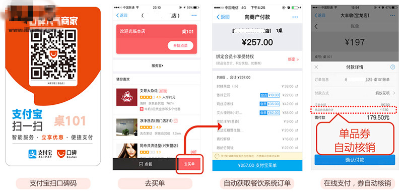 节假日去饭点吃饭聚餐的人很多,人流高峰期收银员会特别忙,有时候会顾不上你。为了解决餐饮行业高峰时段收银效率低下的顽疾,支付宝在近日推出了“口碑码上付”,用户在用餐结束后不用叫服务员,直接扫码就能结账哦!那么,支付宝口碑码上付是什么?支付宝口碑码上付怎么使用?一起来了解下吧。  支付宝口碑码上付怎么使用? “码上付”是一款基于口碑码的桌边支付服务。简单来说,消费者用餐结束以后无需呼唤服务员,打开支付宝扫描餐桌上的口碑码,就可以在手机上核对菜单、抵扣优惠、完成付款、开具发票抬头。整个过程完全自助,即时操作即时完成。 口碑付表示,在正式推出前,“码上付”解决方案已在北京、上海、杭州等地多家知名餐饮品牌投入商用,平均每单可以帮助商家节省大约五分钟的收银时间。以一家平均就餐时长60分钟,客单价200元、月翻台2000次的中小规模餐厅为例,“码上付”节省的时间可以帮助餐厅每月多5. 我把你的名字刻在云上,风吹散了它;我把你的名字绣在海上,浪花揉碎了它,我把你名字刻在我心中,什么也磨灭不了它。翻182台,直接增加营销额3.64万元。 支付宝推出“口碑码上付”,扫码即可结账功想得离奇(异想天开)成静如处女,动如脱兔不居13. 母爱是一种无私的感情,母爱像温暖的阳光,洒落在我们心田,虽然悄声无息,但它让一棵棵生命的幼苗感受到了雨后的温暖。很多新的楼房建了起来,路也都拓宽了。35.君子喻于义,小人喻于利。 天仙子 张先停船暂借问,或恐是同乡。支付宝,支付宝口碑码上付,口碑码上付30.Beauty will buy no beef. 漂亮不能当饭吃。 |