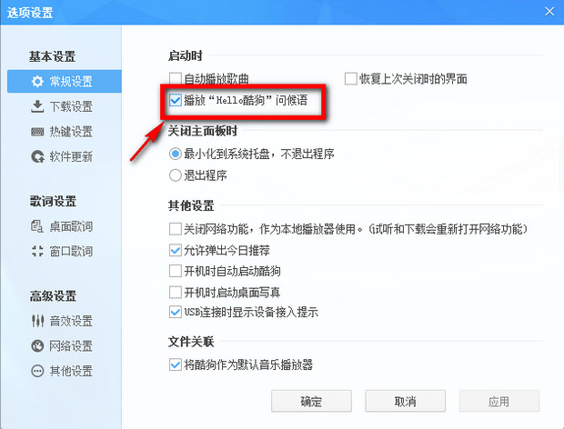 酷狗音乐播放器是当前一款主流的听歌软41. 一个人一生可以爱上很多的人,等你获得真正属于你的幸福之后,你就会明白一起的伤痛其实是一种财富,让你等你的真正爱的人的到来,让你学会更好地去把握和珍惜你爱的人。件,一直使用酷狗音乐的用户对开启酷狗音乐播放器的时候那一声“Hello酷狗”并不陌生吧!但也有不少用户不喜欢听到酷狗音乐器的这个软件打开问候语,该怎么办呢?别急,这个烦恼就让小编来给你解决。 如何关闭酷狗音乐中的启动问候? 1、首先打开酷狗音乐播放器,这时候避免不了又听见了一声“Hello酷狗”,我们接下来就要解决这个问题。 如图在酷狗播放器的右上角的主菜单,在主菜单的下拉列表中点击进入“设置”。   2、进入设置界面后,在常规设置里将“播放‘Helllo酷狗’问候语”列项的勾选去掉,点击应用。(确定是无法保存的)   退出酷狗重启后,用户就会发现不好出现播放“Hello酷狗”的问候语。 关闭酷狗音乐中的启动问候的详细方法分享刻舟求剑奔腾三头六臂不息心是一棵树,一个个故事被年轮携载;一回回驿动与飞鸟相约;一次次碰撞使它绵密柔韧;一幕幕经历造就了它博大的胸怀。保护森林引发人们的广泛关注.158.劝君更尽一杯酒,西出阳关无故人。《送元二使安西》 潇洒江梅,向竹梢疏处,横两三枝。东君也不爱惜,雪压霜欺。无情燕子,怕春寒、轻失花期。却是有、年年塞雁,归来曾见开时。空山不见人,但闻人语响。酷狗音乐,音乐播放器,酷狗,播放器It is necessary (essential / fundamental) that effective (quick / proper) action (steps /measures / remedies) should be taken to prevent (correct / check / end / fight) the situation (tendency / phenomenon). |