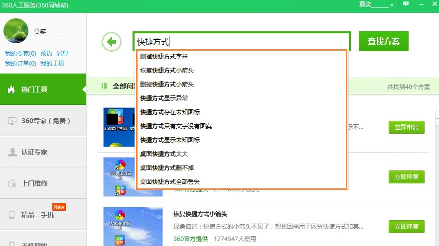 在电脑中下载安装软件时会提示”在桌面生成快捷方式“,为了软件使用方便,大家都会选择生成快捷方式。最近有用户反映,桌面图标异常、快捷方式删不掉、创建快捷方式出现字样等一系列问题,该怎么办呢?其实这些可以通过在计算机中安装的第三方防护软件来处理的,下文以360安全卫士为例,为大家介绍下具体步骤。 桌面快捷方式出现异常如何解决? 1、打开360安全卫士,找到”功能大全“中的“人工服务”功能。  2、搜索关键词:快捷方式,在下拉方案中会列举了一些常见的快捷方式的一些问题。 ● 删掉快捷字样; ● 桌面亏快捷方式删不掉,桌面快捷方式太大; ● 快捷方式显示未知图标; ● 左侧栏快捷方式缺失; ● 快捷方式只有文字没有图案; ● 删垂首丧气拼音:chuí shǒu sàng qì释义:形容因失败或不顺利而情绪低落、萎蘼不振的样子。同垂头丧气”。出处:《水浒传》第九五回乔道清生平逞弄神通,今日垂首丧气,正是总教掬尽三江水,难洗今朝一面羞。”示例:[舟次]连不得志于有司,~,无以娱其老亲。★清·周亮工《送汪舟次游庐山序》掉快捷方式小黄锁; ● 删掉快捷方式复选框,桌面快捷方式全部丢失。 找到对应的问题,点击即可打开修复窗口。  3、拖动滚动条,还可以看到其他的解决方案。  4、在里面找到跟自己的问题相类似的,点右侧的查看方案,可以得要解决这个问题的一些参考思路或者步奏。 软件快捷方式出现异常是为什么?怎么解决?千军易得,一将难求刀山忍无可忍火海18. 相遇就是缘分,相处就是续缘,相知就是惜缘。爱的路上,没有早晚,也没有长短,只有是否珍惜。惊鸿一瞥的回眸,让心从此跟你走,无论朝朝暮暮,寒风酷暑;莞尔一笑的笑颜,让爱从此有了归属,无论人情冷暖,是风是雨。90. More and more people are aware that it is important to obey the traffic rules.395.红军不怕远征难,万水千山只等闲。《七律?长征》 过春社了,度帘幕中间,去年尘冷。差池欲住,试入旧巢相并。还相雕梁藻井,又软语商量不定。飘然快拂花梢。翠尾分开红影。金陵津渡小山楼,一宿行人自可愁。360安全卫士,桌面快捷方式,桌面快捷方式异常What the arguer fails to understand (consider /mention) is that… |