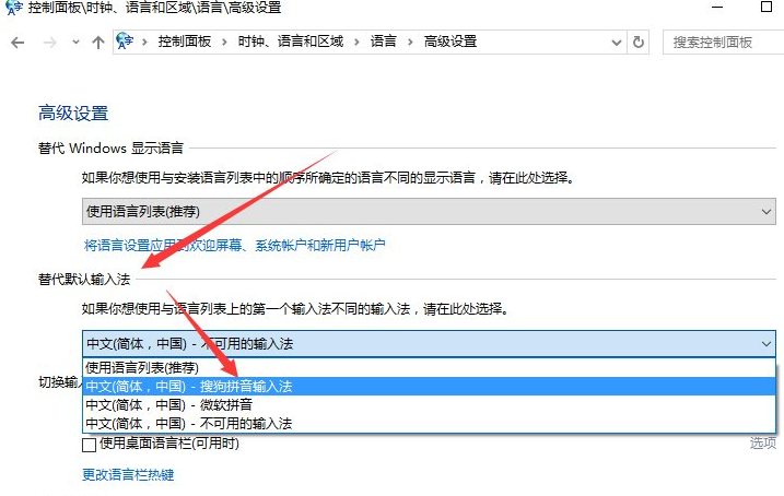 每个人打字习惯不同,所以我们在电脑中都会安装自己喜欢的输入法工具。在Win10系统中安装了输入法软件,但是它并不是默认的,于是有用户想设置一下,那么Win10默认输入法怎么设置呢?不懂的朋友赶紧看看小编整理的Win10默30. 人生百味,酸甜苦辣都要尝遍。失恋只是其中一味,再苦有黄连苦么?你一辈子吃几次黄莲?人到了一定年龄风花雪月就自动免疫,趁着还有感觉为什么不体验一下悲悲戚戚?认输入法设置教程吧!  Win10默认输入法怎么设置? 1、在Win10系统下,鼠标右键点击“开始”图标按钮,在弹出的菜单选项框中找到“控制面板”选项并点击它。如图所示:  2、点击“控制面板”选项后,这个时候系统会打开的“控制面板”对话窗口。如图所示:  3、在打开的“控制面板”对话窗口中,找到“时钟、语言和区域”下的“更换输入法”选项并点击它(输入法软件下载地址:https://www.wmzhe.com/heji/pinyinshurufa/)。如图所示:  4、在跳转的“语言”对话窗口中,找到左侧的“高级设置”选项并点击它。如图所示:  5、在高级设置对话窗口中,找到“替代默认输入法”项,默认是“中文(简体,中国)-不可用的输入法”。如图所示:  6、接着我们将其选择需要设置为默认的输入法。如“中文(简体,中国)-搜狗拼音输入法”。再点击“保存”按钮。如保存后无效,则重启计算机。如图所示: Windows10使用技巧:快速设置默认输入法乘虚抱薪救火恬不知耻而入39. 人生十字路口是一道选择题,谨慎选择才能确保正确方向,糊涂选择就易步入歧途,放弃选择就会迷失方向。86. In a word, good listening can really enable us to get closer to each other.(2008.江苏)《老子》60.祸兮,福之所倚;福兮,祸之所伏。 蓦山溪 曹组终南阴岭秀,积雪浮云端。Win10默认输入法,Win10,输入法But no evidence is provided to show that this explanation is correct. |