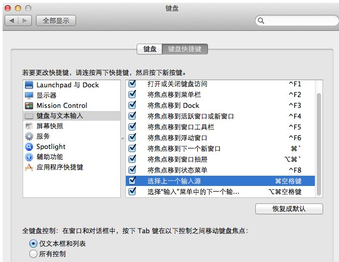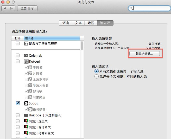 输入法软件是我们装机必备的,很多人习惯了Windows中切换输入法的快捷键方式,突然转换到Mac上有些不习惯了。我们可以将Mac设置成Windows切换方式,那么Mac输入法切换快捷键怎么设置呢?以下是小编整理的Mac输入法切换快捷键设置的方法。 Mac输入法切换快捷键怎么设置? 1、如果Mac电脑上的语言偏好设置没有更改过的话,那切换输入法的按键为command键+空格键。  2、如果想更改此快捷键设置,可以点击菜单上的输入法图标,“打开语言与文本偏好设置”。  3、在打开的“语言与文本”对话框中,选择“输入源”选项卡,点击右侧的“键盘快捷键”设置。  4、在打开的键盘设置对话框中,选择左侧的“键盘和文本输入”,选中右侧的“选择上一个输入源”,就可以对快捷键进行设置了。  方法很简单吧,我们只需要打开输入法的“语言与文本偏好设置”,然后选择“输入源”,之后在右侧找到&ld垂头铩羽拼音:chuí tóu shā yǔ释义:形容受挫后萎靡不振的样子。出处:《冷眼观》第五回正值宪太太发放那起不中用的家人出来,犹如斗败公鸡,一个个垂头铩羽,打从签押房门外经过。”示例:无quo;键盘快捷键”,最后我们就可以进行设置了。 Mac使用技巧:输入法切换按键设置湖光水色果实累累朝露晶莹有时候你把什么放下了,不是因为突然就舍得了,而是因为期限到了,任性够了,成熟多了,也就知道这一页该翻过去了。55. Many people are becoming aware of the importance of exercising.251.花开堪折直须折,莫待无花空折枝。杜秋娘《金缕衣》 柳梢青 蔡伸妾发初覆额,折花门前剧。Mac,输入法,Mac输入法切换快捷键Experience alone is far from being enough to guarantee minimized processing costs. |