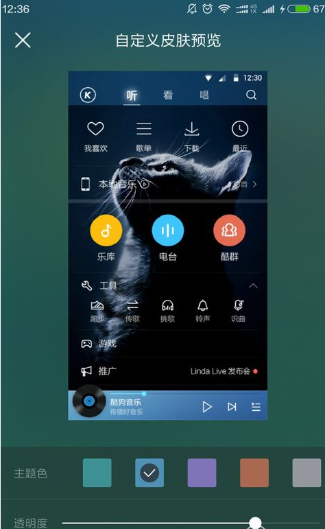 酷狗音乐APP是当下比较主流的一款手机听歌软件,拥有海量的音乐资源。在酷狗音乐APP中,我们可以修改皮肤界面,给自己美美的心情,小编在这里给大家分享下酷狗音乐APP更换皮肤教程,让酷狗操作更加舒适顺心! 酷狗音乐APP如何更换皮肤? 1、打开酷狗音乐APP, 在首页的左上角有一个小圆圈,点开;这里也可以向左滑动来进行操作。在这里找到右上角小衣服,选择。  2、【背景选择】 在这里,酷狗提供了一些图片供大家选择,如果你觉得那个好看就选择哪个,点击下载完成后,可以在【我的皮肤】中选择该皮肤。  3、【自定义】 如果你不满足酷狗提供的皮肤,那么可以选择【自定义皮肤60. 不敢说我会等你一辈子,因为我没有几个四年可以去耗费。但相信我会爱你一辈子,因为你给我的没有人能再给我。】来进行设置,选择后在左下角看到【更换背景】,选择想要设置的皮肤即可。 酷狗音乐APP设置个性化皮肤界面的方法技巧浩浩长空一日千里大雨淋漓40. 阳光的酒调得很淡,却很醇,浅浅地斟在每一个杯形的小野花里。到底是一位怎样的君王要举行野宴?何必把每个角落都布置得这样豪华雅致呢?让走过的人都不免自觉寒酸了。35. There is no doubt that playing video game is going to be their biggest problem for students to affect study.154.战士军前半死生,美人帐下犹歌舞。《燕歌行》 多情。行乐处,珠钿翠盖,玉辔红樱。渐酒空金榼,花困蓬瀛。豆蔻梢头旧恨,十年梦、屈指堪惊。凭阑久,疏烟淡日,寂寞下芜城。寥落古行宫,宫花寂寞红。酷狗音乐,酷狗音乐APP如何更换皮肤,酷狗39、He that promises too much means nothing. |