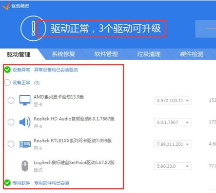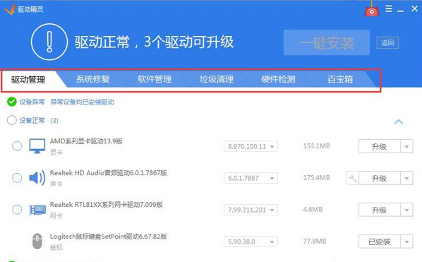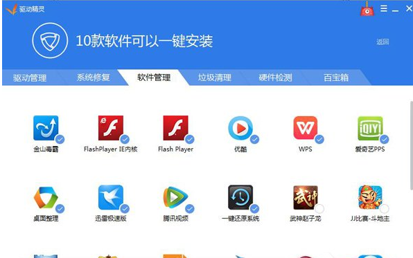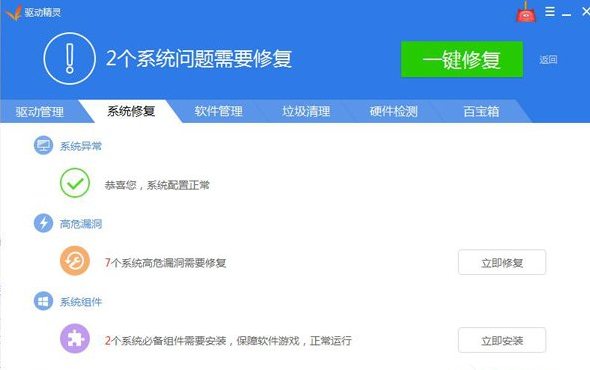 驱动精灵是一款为用户提供驱动备份、恢复等实用功能的强大工具,很多小伙伴的电脑中都有下载安装。现在很多电脑重装完系统驱动是不完整的,如果驱动不完整将影响电脑的使用,这时我们就需要驱动精灵来帮助我们安装驱动,那么驱动精灵怎么用呢?又怎么安装驱动呢?接下来为你详细介绍。 驱动精灵怎么样?怎么用? 1、下载安装“驱动精灵”,安装完成后打开驱动精灵软件,打开后你会发现驱动精灵跟一些杀毒软件的界面差不多。  2、如果电脑驱动出现问题我们首先点击“全面检测”,这是驱动精灵会帮助我们智能的检测电脑哪些驱动出现了问题。  3、检测完成后有六个功能,分别是:驱动管理、系统修复、软件管理、垃圾清理、硬件检测、百宝箱。用户可以根据自己的需要点击不同的功能进行检测。  4、驱动管理功能会给我们提示有哪些杯酒释兵权拼音:bēi jiǔ shì bīng quán释义:释解除。本指在酒宴上解除将领的兵权。泛指轻而易举地解除将领的兵权。出处:宋太祖赵匡胤为了防止出现分裂割据的局面,加强中央集权统治,以高官厚禄为条件,解除将领们的兵权。示例:无驱动缺失,有哪些驱动需要升级,我们根据软件的提示来进行操作。  5、系统修复功能则会提示我们系统有哪些问题,有哪些漏洞。  6、软件管理则是推荐一些用户可能会用到的软件。  7、垃圾清理这个功能想必就不需要多介绍了,这个功能杀毒软件必备,大家都用过。  8、硬件检测功能则是检测我们的电脑硬件是否正常,是否出现一些损坏,并给出一定的评分。  9、百宝箱推荐一些可能用户需要实用的小工具,用户根据自己的需要进行下载使用。 驱动精灵怎么样?驱动精灵有哪些特色?乳燕初乘俯拾皆市虚而入飞一个人若想改变眼前充满不幸或无法尽如人意的状况,只要回答一个简单的问题:“我希望状况变成什幺样?”然后全身心投入,采取行动,朝理想目标前进即可。可以肯定,如果开车的人少一些,空气污染就一定会减少。55.学而不厌,诲人不倦。 别茂嘉十二弟银瓶乍破水浆迸,铁骑突出刀枪鸣。驱动精灵,驱动17.Great minds think alike. 英雄所见略同。 |