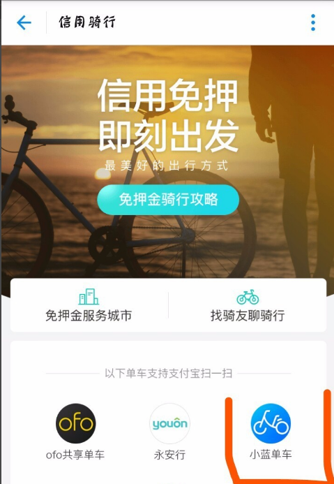 共享单车的推出给广大市民提供了短距离出行的便利服务,支付宝免押金骑行活动是支付宝特别为部分城市市民带来的便捷服务,那么支付宝怎么免押金租车呢?一起来看看支付宝免押金租车方法流程吧。 支付宝免押金租车流程 免押金骑行活动需要15. 你以为不可失去的人,原来并非不可失去。你流干了眼泪,自有另一个人逗你欢笑。你伤心欲绝,然后发现不爱你的人,根本不值得你为之伤心。支付宝用户的蚂蚁信用分在600--750之间才能使用免押金骑行  1、打开支付宝,进入个人中心页面,点击“芝麻信用”,点击“骑行”,如图。   2、点击“免押金服务城市”,我们可以看见哪些车在我们生活的城市是可以信用骑行的,方便我们做出选择。  3、选择自己城市有的一款单车,比如小蓝单车。当然信用骑行是有芝麻分要求的,比如这款就要700分。  4、点击“立即用车”,通过扫二维码就可以马上骑走了  目前开启活动的城市: 目前只有部分城市人可以享受这项服务,下面几张图告诉你现在能使用的城市以及对应活动合作的共享单车  支付宝免押金租车在哪些城市开通?不耻漫金碧辉煌漫长夜下问45. 天空收容每一片云彩,不论其美丑,所以天空宽阔无边。大地拥抱每一寸土地,不论其贫富,所以大地广袤无垠。海洋接纳每一条河流,不论其大小,所以海洋广阔无边。more than 非常212.东边日出西边雨,道是无晴却有晴。《竹枝词》 三年枕上吴中路,遣黄犬,随君去。若到松江呼小渡,莫惊鸳鹭,四桥尽是、老子经行处。海上风雨至,逍遥池阁凉。支付宝,支付宝免押金租车It is the belief in a brighter future that gives us optimism. |