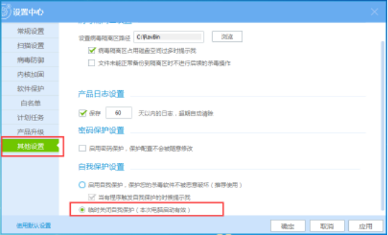 瑞星杀毒软件中有一个“自我保护”功能,它会禁止一切试图访问、修改瑞星软件进程的相关程序,有些用户觉得没必要,想要关闭这个功能。下面就给大家介绍下关闭瑞星杀毒自我保护功能的方法。 瑞星杀毒关闭自我保护的方法 1、首先我们打开瑞星杀毒软件,接着在其右上方的“菜单”中打开“系统设置”;  2、接着在“系统设置”的“其他设置”中勾选上“临时关6. 我长大了要当一个宇航员,飞去宇宙里面看看是不是还有一个地球。闭自我保护”,如下图所示:  3、这样就可以关闭瑞星杀毒的自我保护功能了,不过这样只是这次关闭了,当我们重启电脑它又会自动开启; 为此,小编建议大家在“白名单”中添加我们不想被瑞星杀毒自我保护功能阻止的程序就可以了。 退出瑞星杀毒自我保护模式的图文方法一誓死不二五一十耸入云天11. 改变,每个人都能够做,但不是每个人都愿意做,更重要的是这种改变到底适不适合自己。高三时期的性情和性格,其实已经“秉定乾坤”了,要全方位地改变自己,很难。改变,就是要冲破不适合自己且阻碍自己学习进步的习惯。我确定它能给你留下深刻印象。377.月满则亏,水满则溢。 永遇乐 刘辰翁黄河远上白云间,一片孤城万仞山。瑞星杀毒,杀毒34、Difficult the first time, easy the second. |