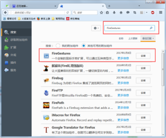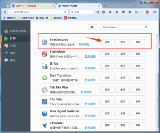 我们在使用火狐浏览器时可以设置鼠标手势,充分发挥鼠标在浏览器中的操作方式,来完成特定的操作。下面是小编带来的火狐浏览器鼠标手势的设置方法,有需要的小伙伴可以了解下。 火狐浏览器鼠标手势的设置方法 1、首先我们在火狐浏览器右上角的菜单中打开“附加组件&rdquo57. 如果你开心,我何必挡住你的阳光,我更愿意送你沐浴阳光,别忘了阳光离开了,在原地为你撑伞的我,一直在为你留守;;  2、接着在“扩展”的搜索框中搜索“FireGestures”,搜索完毕后下载安装该插件(安装完毕后记得重启浏览器),如下图所示:  3、安装完毕后在扩展里找到FireGestures插件,然后点击“选项”按钮;  4、打开后界面如下图所示,在“常规”界面是设置鼠标手势的,比如是需要点击左键还是右键或者中间,还有时间间隔等;  5、在“映射”里可以看到各种手势以及它们所的功能操作。此外还有“高级”设置和“滑动”设置,这里就不多做介绍了。 火狐浏览器使用技巧:设置鼠标手势完成指定操作月色迷人秀丽惹人喜爱多姿43. 看重别人,尊重别人,就能把对手变成自己的朋友,就能化害为益,变坏为好,就能把遭遇变为幸运,把坎坷变为通途。make full preparations:做充分准备281.泪眼问花花不语,乱红飞过秋千去。《蝶恋花》 见梨花初带夜月,海棠半含朝雨。内苑春、不禁过青门,御沟涨、潜通南浦。东风静,细柳垂金缕,望凤阙非烟非雾。好时代、朝野多欢,遍九陌、太平箫鼓。乍莺儿百啭断续,燕子飞来飞去。近绿水、台榭映秋千,斗草聚、双双游女。人生得意须尽欢,莫使金樽空对月!火狐浏览器,浏览器,鼠标手势43、Man proposes, God disposes. |