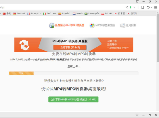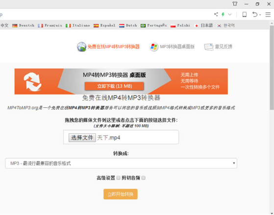 MP4已经成为互联网上最流行的音视频格式,我们可以发现从各大视频资源网站下载的视频文件很多是MP4格式的。如果你想直接在手机上听这些歌曲,MP4格式就没那么方便了,它的格寸长尺技拼音:cùn cháng chǐ jì释义:犹言微才薄技。出处:《二刻拍案惊奇》卷三九孟尝君平时养了许多客,今脱秦难,却得此小人之力,可见天下寸长尺技,俱有用处。”示例:无式不易被识别,最好的办法是把MP4视频转换成MP3文件,今天 ,小编给大家分享一个在线的MP4转MP3工具网站,既不用交钱,也不用下载安装,这个工具就是MP4toMP3.org。 用MP4toMP3.org将MP4格式转换成MP3文件 MP4toMP3.org是一个在线音视频转换工具,无需注册,完全免费,可以将你的音乐文件或者视频文件在线转换为MP3或其他音频格式,例如MP3、M4A、AAC、FLAC、OGG和WMA。 1、打开MP4toMP3.org中文版 打开你的浏览器,输入mp4tomp3.org打开页面,然后在上面选择“中文”。  2、选择一个MP4文件 点击“选择文件”按钮,在弹出的窗口里选择你需要转换的MP4文件并点击“打开”,或者拖拽你的MP4文件到选择文件的方框。  3、选择转换格式 在“选择文件”区域的下方,可以看到一个“转换为”的下拉框。点击这个下拉框选择MP3文件格式。   4、高级设置和音频剪切 勾选“高级设置”后你可以设置输出的MP3的参数如比特率(默认为192Kbps,可以设置到最高320Kbps),采样率以及是否立体声。通过勾选旁边的“剪切音频”选项,你可以设置一个起始时间和结束时间,这样转换时程序会自动按照你设置的时间段将音乐剪切好然后生成MP3文件。  5、开始转换 点击“立刻开始转换”按钮了,点击它之后你将看到上传的进度条(上传的速度还是非常快的)。上传结束后程序会立刻自动开始转换,等待的时候也会有提示例如“转换时间取决于音频时长”之类。一但转换完成,就会跳转到下载页面,点击“点这里下载已转换的文件”这个链接就可以下载转换好的MP3音乐啦!  PS:MP4toMP3.org这个网站支持大概上百种视频音频的识别,基本就是一个支持所有视频和音频格式的音乐转换器,所以遇到不好转换的视频或者音频格式都可以上传上去试一试。希望这篇教程能帮助到你! 免费将MP4转换成MP3格式的方法分享力争水骨瘦如柴流湍急上游9. 其实成长,就是一颗美味的糖果,那唇齿留香的滋味回味我们无穷无尽的遐想。可是如果不加以节制,我们便尝不到那最初的那份甜蜜,取而代之的必定将是阵阵疼痛。所以成长中的我要学会排解烦恼,保护好我们的“牙齿”。只有这样,我们才会品味到更多的甜蜜与快乐!I\'d appreciate it if … 如果……我将不胜感激;at your earliest convenience [书信用语] 尽早;尽快王勃141.海内存知己,天涯若比邻。《送杜少府之任蜀州》 木兰花 晏殊清辉淡水木,演漾在窗户。转换,格式转换,MP317、Courtesy costs nothing. |