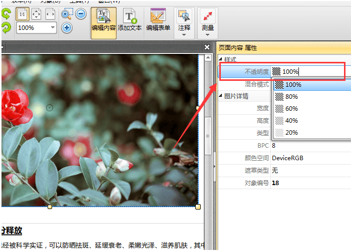 我们在对PDF文件进行编辑处理时,需要对图片透明度进行修改,那么图片透明度应该怎么修改呢?我们可46. 感情的事总是很难说清楚,我知道分手总是令人难过的,但无论如何,我永远都会站在你这一边,支持你。努力让自己快乐起来吧,好吗?以利用捷速PDF编辑器进行修改操作,下面是具体的操作方法,有需要的小伙伴可以参考。 如何在PDF文件中修改图片透明度? 1、在电脑上运行捷速PDF编辑器,点击软件界面的“打开”选项,将需要编辑的PDF文件打开。  2、如果想要修改PDF文件里图片的透明度,那么首先需要点击编辑内容选项,这样即可选择需要进行修改的图片,进行图片透明度修改操作。  3、接下来需要点击鼠标右键,然后点击“属性”按钮,将属性界面打开。  4、属性界面打开后,点击属性界面里的“透明度”选项,即可对选中图片的透明度进行修改。 调节PDF文件中图片透明度,就用捷速PDF编辑器霜林尽染丹风雨同舟霞似锦14. 至于所有的花,已交给蝴蝶去点数。所有的蕊,交给蜜蜂去编册。所有的树,交给风去纵宠。而风,交给檐前的老风铃去一一记忆、一一垂询。18. Children usually have far more potential than their parents had realized51.人无远虑,必有近忧。 渐新痕悬柳,淡彩穿花,依约破初暝。便有团圆意,深深拜,相逢谁在香径?画眉未稳,料素娥、犹带离恨。最堪爱、一曲银钩小,宝奁挂秋冷。圣文神武皇帝初,公孙一人而已。玉貌锦衣,况余白首!今兹弟子亦匪盛颜。既辨PDF,编辑器,PDF编辑器49、Life is a span. |