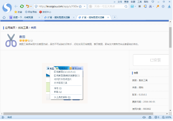 我们在使用搜狗浏览器时想截图当前页面,可以安装截图插件哦,很多用户都找不到它的截图工具在哪,接下来小编就把搜狗浏览器安装截图插件以及如何截图的详细步骤分享给大家。 搜狗浏览器截图工具怎么用? 1、首先我们打开搜狗浏览器,然后根据下图进入到搜狗浏览器的扩展中心:  2、来到扩展中心后,我们在右侧的搜索框中搜索“截图”;  3、搜索完毕后挑一个自己喜欢的截图软件点击安存亡续绝拼音:cún wáng xù jué释义:存保存;续接续。恢复灭亡的国家,延续断绝了的贵族世家。出处:清·龚自珍《古史钩沉论二》天生孔子不后周,不先周也,存亡续绝,俾枢纽也。”示例:无装就可以了;  4、另外截图工具的使用方法一般在其简介中都会有说明;  5、比如小编安装的这个截图工具,安装完毕后在搜狗浏览器的工具栏中会有一个截图按钮,点击它我就可以截图了。  关于搜狗浏览器截图工具的使用方法就介绍到这,大家可以自己试试(了解更多精彩教程资讯,关注wmzhe.com)。 搜狗浏览器进行网页截图的具体步骤定时拐弯抹角炸弹弹尽粮绝虎背熊腰42. 汤的英俊不露声色,也和同事开玩笑,也有自己应酬的圈子,说话也不见得多么与众不一样,穿衣服也是很普通的款式。但是就是给我那样的印象,华丽。随着日益迅速的经济发展,更多的问题受到我们的关注。312.死去元知万事空,但悲不见九州同。王师北定中原日,家祭无忘告乃翁。《示儿》 东风著意,先上小桃枝。红粉腻,娇如醉,倚朱扉。记年时,隐映新生妆面,临水岸,春将半,云日暖,斜桥转,夹城西。草软莎平,跋马垂杨渡,玉勒争嘶。古台摇落后,秋日望乡心。搜狗,搜狗浏览器,浏览器,截图44、Strike while the iron is hot. |