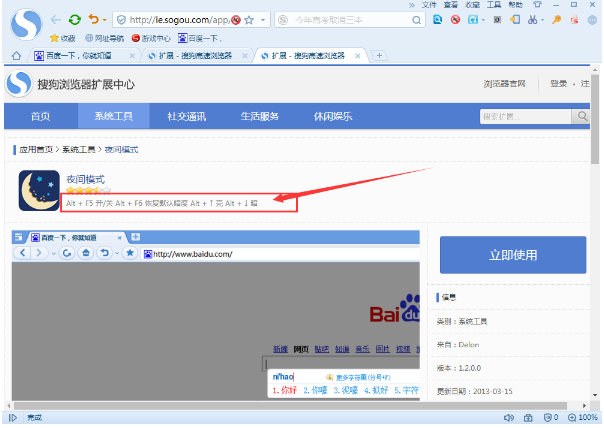 对于长时间面对电脑的办公族来说,缓解眼睛疲劳、保护视力是很有必要的。在搜狗浏览器中有一个护眼模式,开启该模式后可以减轻我们的眼睛负担。想要开启护眼模式还需要安装一个插件,下面是小编带来的搜狗浏览器开启护眼模式的具体步骤。 搜狗浏览器护眼模式使用方法 1、首先我们打开搜狗浏览器,然后根据下图打开搜狗浏览器的扩展中心;  2、接着在扩展中心右侧的搜索框中搜索&ldquo50. 失恋了,好似上帝再给你一次重新选择的机会,让你看清对方,看清自己。让你知道自己真正想要的是什么。;护眼”;  3、之后在搜索的结果中安装一个你喜欢的护眼插件即可;  4、另外我们进入到护眼插件的界面就可以看到他们的使用方法了。  关于开启搜狗浏览器护眼模式的方法介绍就是这样,了解更多精彩教程资讯,关注wmzhe.com。 进入搜狗浏览器护眼环境的方法蛛百里挑一丝马迹杯水车薪36. 日子总是像从指尖渡过的细纱,在不经意间悄然滑落。那些往日的忧愁和误用伤,在似水流年的荡涤下随波轻轻地逝去,而留下的欢乐和笑靥就在记忆深处历久弥新。59. My deskmate admires my fluent English very much and I usually feel encouraged by his compliments.(2013.湖北)32.圣人千虑,必有一失;愚人千虑,必有一得。 紫萸香慢姚云文 近重阳、偏多风雨,绝怜此日暄明。问秋香浓未,待携客、出西城。对此结中肠,义往难复留!浏览器,搜狗,搜狗浏览器,护眼24.Ill news travels fast. 坏事传千里。 |