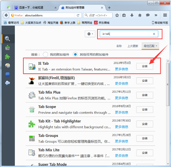 我们在使用火狐浏览器时,有些网站是需要在兼容模式才能打开的,但是有小伙伴反映说不知道火狐浏览器中如何设置兼容模式。针对这个问题呢,今天小编就给大家详细说说火狐浏览器开启兼容模式的方法,下面就让我们一起来看看吧。 火狐浏览器设29. 你身上的味道最好闻,你笑起来的样子最好看,你陪着我的时候,我从没羡慕过任何人,很想陪你走完这一生。置兼容模式的方法 1、首先我们打开火狐浏览器,然后在其右上角的菜单中打开“附加组件”功能;  2、接着在附加组件界面的搜索框中输入“ie tab”,并安装此插件,安装完毕后记得重启浏览器;  3、之后在我们想要改变成兼容模式的页面点击鼠标右键,然后选择“使用IE Tab浏览此页面”;  4、点击后在网址输入栏的左边出现如下图的图标后就代表已经开启了兼容模式。 开启火狐浏览器兼容模式的图文步骤日薄西山人万里无云山人海46. 您的笑容是世界上最和煦的春风,您的眼泪是世界上最名贵的珍珠,您的皱纹是辛苦岁月霜雪雨的刻痕;您的画像是勇敢和坚韧的象征。88. Linda didn’t go to bed until midnight so that she could finish reading the book.371.长江后浪推前浪,一代新人换旧人。 画帘遮匝,新翻曲妙,暗许闲人带偷掐。前度书多隐语,意浅愁难答。不消红蜡,闲云归后,月在庭花旧阑角。101李白:渡荆门送别火狐浏览器,浏览器,火狐30、Do not change horses in mid-stream. |