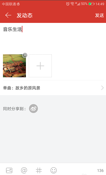 我们在使用网易云音乐听歌是难免会有感而发,想分享当下的心境,类似于朋友圈、qq动态那样,该如何操作呢?下面小编就给大家说说手机网易云音乐发表动态的方法,往下瞧。 手机网易云音乐怎么发布动态? 1、在手机上21. 我是个俗气至顶的人,见山是山,见海是海,见花便是花。唯独见了你,云海开始翻涌,江潮开始澎湃,昆虫的小触须挠着全世界的痒。你无需开口,我和天地万物便通通奔向你。打开网易云音乐,点击界面右上方的双人头像,如下图所示:  2、进去之后,点击最下方的红色“+”,如下图所示:  3、在弹出框界面,选择“发动态”,如下图所示:  4、选择自己要发布的歌曲和内容,选择“发送”,如下图所示:  5、我们可以看到已经发布成功了,如下图所示: 网易云音乐app中发表动态的方法分享鹬月光皎洁蚌相如花似玉争2. 天空包含着白天和黑夜,即使黑夜的阳光远不及白天,但天空却不能失去黑夜,就像黑夜不能失去星星。1. It is important for everyone to learn English well in our rapidly developing world.王安石283.千门万户曈曈日,总把新桃换旧符。《元日》 楼头画角风吹醒,入夜重门静。那堪更被明月,隔墙送过秋千影。风吹柳花满店香,吴姬压酒唤客尝。网易云,网易云音乐Current wisdom says that (当前流行的看法认为)if you want a successful product, you need first to perform detailed market analysis, making sure that there are plenty of people who need the new product and that your entry into the market will be able to gain a significant share of that market. |