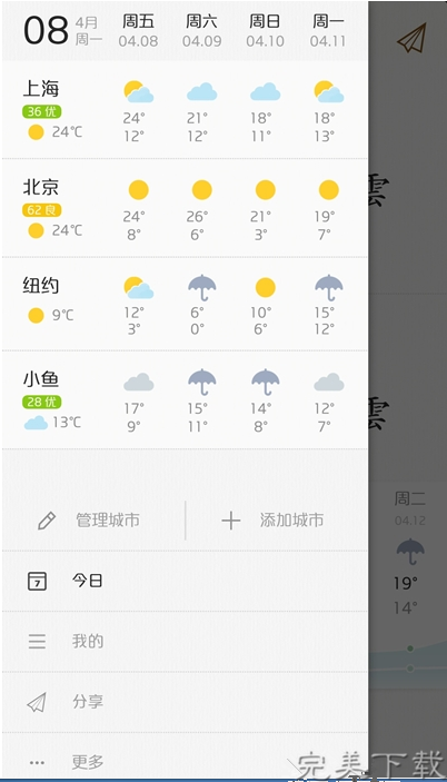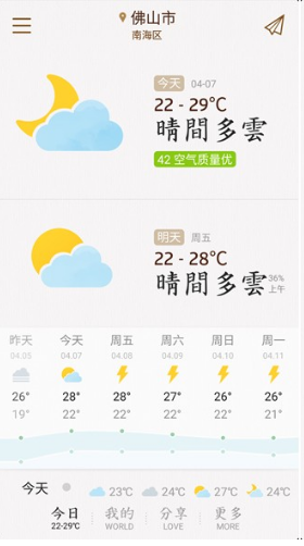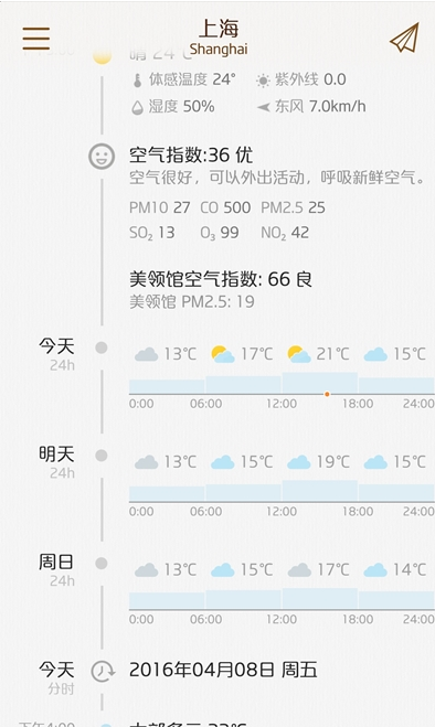相信绝大部分用户在手机中都有安装天气app,可以随时了解天气状况,做好添衣准备。网上的天气查询app也是各种各样,或是清新可爱,或是专业权威,而今天小编要给大家推荐的这款天气应用,堪称最美天气app,它就是my weather,它究竟美9. 骑白马的未必是王子,他可能是唐僧;带翅膀的未必是天使,她可能是鸟人;失恋也未必是痛苦的,它可能是另一段缘份的开端。在哪呢?一起来看看吧! MyWeather的使用体验古朴风的界面 my weather的界面清新,在初次进入应用时,它会给你两个选择,是选择单日天气显示呢?还是双日呢?  my weather的主界面很清爽,双日的天气占据了屏幕的一大半区域,主要的信息以天气图标及古朴的文字风来呈现,给人一种非常古典的感觉,同时屏幕还不时有花瓣落下,这意境逼格简直满分!(语言可以在设置中进行修改,支持英文、简体及繁体等)  底部左右滑动可了解近10天的天气详情,上滑还可以查看空气质量、降水度、紫外线、湿度等信息,最让人惊喜的就是在最下面,它将为你呈现最近几天各个时间段的详细天气信息,当然对于准确性,我还是比较怀疑的。 多城市同时监测 my weather当然也支持多城市的实时监测,你可以在最左侧的菜单中进行设置,在这里有个小彩蛋就是你可以将联系人及与之相关的地点进行设置,这样你在切换城市时,会直接以联系人的信息来展现,一定程度上便于你的查看。   你可以在主屏左右滑动手机边缘来进行当前城市的切换,亦可以在底部“我的”菜单中查看和管理城市。 桌面小插件和主题 与ios版不同,Android系统可以将这些天气应用设置成各种桌面小插件,那么我们不妨来看看my weather的三种小插件吧。   在添加时你可以对插件的颜色及透明度进行调,除了插件,你也可以对APP本身的主题进行修改,不过有些主题是需要完成特定任务才可以解锁的,比如分享APP、安装推广APP等。 在MyWeather(我的天气)中,随处可见的纸飞机图标代表着分享接口,你可以把你所在的天气分享给那个Ta,同时也可以获取Ta所在地的天气情况,及时提醒对方注意天气变化,撩妹必备啊!  严谨的天气数据,极致清爽的UI以及更好顺手的交互体验,让MyWeather这款天气查询App获得不少的用户,喜欢的小伙伴可以去下载体验啦(了解更多精彩教程资讯,关注wmzhe.com)。 MyWeather:手机天气app中的颜值担当春八面玲珑反败为胜暖花开21. 想起十六岁那年,站在女子中学的花园里所感到的眩晕。那年春天,波斯菊开得特别放浪,我站在花园中间,四望皆花,真怕自己会被那些美所击昏。征服英语不亚于征服一座高山,都需要决心,勇气和毅力。岑参198.山回路转不见君,雪上空留马行处。《白雪歌送武判官归京》 危亭望极,草色天涯,叹鬓侵半苧。暗点检、离痕欢唾,尚染鲛绡,嚲凤迷归,破鸾慵舞。殷勤待写,书中长恨,蓝霞辽海沉过雁。漫相思、弹入哀筝柱。伤心千里江南,怨曲重招,断魂在否?下床畏蛇食畏药,海气湿蛰熏腥臊。天气,天气查询The assembly line reduced workers to cogs of machinery and made their jobs unutterably boring, but it produced goods fast. |