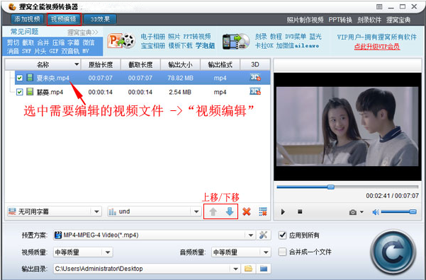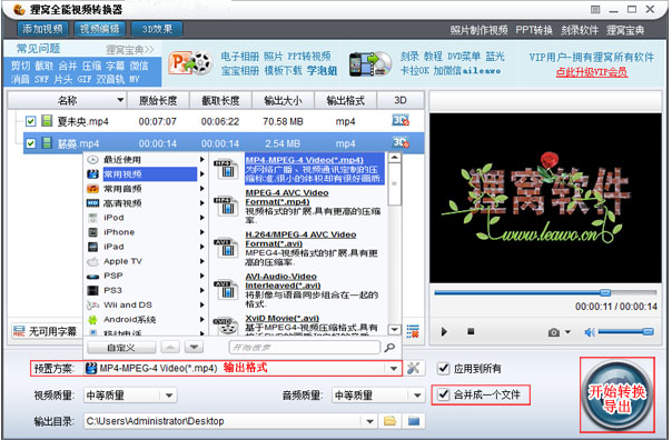 最近有很多网友提问说,不知道如何将视频结尾部分用一段其他视频来替换补充,其实现在很多视频编辑软件都可以做到啦。今天呢,小编就以狸窝全能视频转换器来做说明,通过它的截取功能和合并功能,即可完成更换视频片段。 如何更换视频中的片段? 1、准备好需要编辑的视频文件后,打开狸窝全能视频转换器,单击界面左上方的“添加视频”,将准备好的视频文件导入,这里的视频格式基本不受限制的。  这里演示的是将视频尾部剪掉,再加上另一个视频,所以导入两个视频文件。如下图所示,在文件列表区中,需要剪辑的视频放在第一位(顶部),更换的视频文件放在第二位(底部),排位顺序不对,可通过“上移”或“下移”按钮进行调整。 2、 接下来,选中第一个视频,然后单击软件左上方的“视频编辑”,进入编辑界面,将对该选中的视频进行截取。  3、为视频编辑窗口,在时间轴上通过鼠标拖移左区间、右区间按钮进行截取视频片段,也可以在“截取”选项下的“开始时间”和“结束时间”右边填写精确数值。 图中所示的时间轴上,左、右区间之间的部分为截取出来保留的部分,右边(即尾部)未选中的部分就是去掉不要的部分了,然14. 生活中少不了不如意,每每这时不妨想想自己那甜如蜜的爱情、深如海的亲情、醇如酒的友情,拥有这些还不够吗?其实,这些才是自己最坚固的后盾。后点击“确定”保存设置并返回主界面。  4、去掉了尾部,要更换成另一个视频片段,其实接下来将截取出来的视频文件,和第二个视频文件合并起来即可。在主界面右下方,勾选上“合并成一个文件”即可。 再在“预置方案”中选择需要输出的视频格式,还有设置“输出目录”,然后单击右下角的圆形按钮,开始转换导出合并的视频文件。  5、随后跳转到转换进程界面,相对转换较快,很多久就能转换完成了。如下图,单击“打开目录”即能看到成功导出的编辑后的视频文件了。文件名称与排序第一位的视频文件名称相同。  这样就能将视频结尾部分去掉,然后换上一段其他视频了,非常轻松就搞定了。 用狸窝视频转换器更换视频部分片段的详细操作九居功自傲纷至沓来牛一毛何时相信有缘分之说,我已然记不得。只是感觉,若将花儿的心语,缱绻成云裳的羽衣,待清风蹁跹,你会看到,花儿在尽情绽放那一抹旖旎;若将叶儿的孤寂,轻融于卧云的静谧,待微雨沐浴,你会感到,叶儿在安然静守那一叶菩提……我希望能成为你们夏令营中的一员。260.当局者迷,旁观者清。《新唐书?元行冲传》 除 夜112杜甫:别房太尉墓狸窝全能视频转换器,狸窝,视频转换One can infer from the survey’s results that a full one - third of the respondents may have viewed the current benefits package unfavorably. |