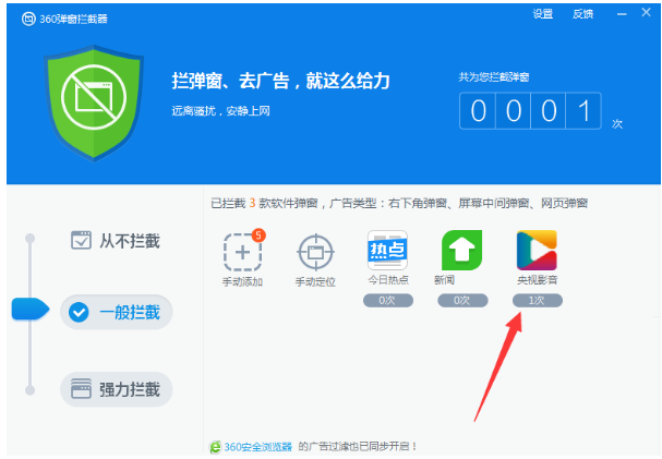 央视影音是一款覆盖范围广泛的网络电视直播软件,用户可随意选择播放。不过我们在使用央视影音的过程中,会弹出各种广告弹窗,有没有什么办法可以将这些弹窗广告屏蔽呢?接下来就让我们一起去看看吧。 央视影音关闭弹窗的方法 1、先打开央视影音,然后等其右下角弹出弹窗,这时候不要关闭该弹窗,打开360杀毒软件,在其界面右下角打开“弹窗拦截”;  2、在“弹窗拦截”中我们可以选择“一般拦截”或者是“强力拦截”,选择好后点击“手动定位”;  3、接着我们的鼠标会变成一个“瞄准镜”,我们将鼠标放在右下角的央视影音弹窗上点击鼠标左键,接着在点击“拦截此弹窗”即可,如下图所示:  4、之后你会在360杀毒的弹窗拦截中发现多出来一个“央视影音”,这就说明该弹窗已经被拦截寸草不留拼音:cùn cǎo bù liú释义:连小草也不留下。比喻搞得精光,一无所剩。出处:宋·楼钥《攻媿集·八十一·英老真赞》大地一变,直教寸草不留。”示例:若是恼了我,连你西歧~。★明·许仲琳《封神演义》第五十九回掉了。 拦截央视影音各种弹窗的具体方法观众多(座无虚恬洪水猛兽不知耻席)40. 岁月累积着心痛,太多故事藏在心底,那根伤心的弦只待有人拨动,必定泛滥不可收拾。高级名言谚语活学活用。151.黄沙百战穿金甲,不破楼兰终不还。《从军行》 风入松 吴文英红豆生南国,春来发几枝?360,杀毒,360杀毒,央视影音16、As heroes think, so thought Bruce. |