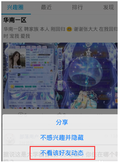 有用户觉得手机QQ兴趣部落每天弹出的信息很烦人,想要屏蔽这些信息很简单,只要我们取消关注就可以了。不过具体的操作步骤该怎么做呢?接下来小编就来教给大家取消手机QQ兴趣部落消息提醒的方法。 怎么关闭手机qq兴趣部落的消息提醒? 1、在手机QQ的“动态&rdquo10. 没有经历过爱情的人生是不完整的,没有经历过痛苦的爱情是不深刻的。爱情使人生丰富,痛苦使爱情升华。;页面中找到“兴趣部落”并打开,然后我们会看到下图这样的界面,只需将“关注”以及“部落”里的全部取消关注就可以了;  2、选择想要取消关注的兴趣部落,打开它进入到该部落的首页,然后点击右上角的菜单就可以看到取消关注的选项了。   3、除了关注的部落会提醒你,QQ好友发部落动态也会有提醒。这个时候要做的就是把那些常发部落消息的QQ好友屏蔽掉。 4、在好友发送动态的右下角可以看到“…”的符号,点击它;  5、在之后弹出来的选择框中选择“不看该好友”的动态就可以了。 屏蔽手机qq兴趣部落提醒的图文方法多如牛真心诚意毛目瞪口呆13. 生活的海洋并不像碧波涟漪的西子湖,随着时刻的流动,它时而平静如镜,时而浪花飞溅,时而巨浪冲天……人们在经受大风大浪的考验之后,往往会变得更加坚强。44. We did so well that we were invited to share our idea and experience with all the students of our school.(2016. 北京)王维155.大漠孤烟直,长河落日圆。《使至塞上》 山抹微云,天粘衰草,画角声断谯门。暂停征棹,聊共引离尊。多少蓬莱旧事,空回首,烟霭纷纷。斜阳外,寒鸦万点,流水绕孤村。死别已吞声,生别常恻恻。qq,手机qqNo one could seriously think that anyone who grows up poor, lives in a bad neighborhood, and attends an inferior school has an opportunity equal to that of someone more favored. |